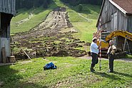 Experimentelle Daten gewinnen wir nicht nur im Feld, sondern auch in unserem Grossraumlabor: Wir simulieren Hangmuren auf einer Rampe im Labor oder prüfen mit eigens entwickelten Apparaturen, wie sich Pflanzenwuchs auf die Stabilität von Erdschichten auswirkt. Diese Daten fliessen auch in das RAMMS-Modul zur Simulation von Murgängen ein.