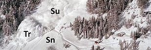 In einer Staublawine laufen komplexe physikalische Prozesse ab. Sie besteht im Wesentlichen aus drei Schichten, die während des Niedergangs miteinander interagieren (siehe Abbildung): eine dichte granulare Grundschicht, ein Übergangsbereich in Form einer pulsierenden turbulenten Strömung sowie eine verdünnte turbulente Schwebeschicht mit feinsten Partikeln (eine Staubwolke) die das Ganze bedeckt. Um diese Vorgänge zu verstehen und die Zerstörungskraft von Lawinen richtig abzuschätzen, schauen Forschende des SLF bei Experimenten im Lawinentestgelände im Vallée de la Sionne (Gemeinde Arbaz, VS) mit Messinstrumenten und Sensoren ins Innere der Lawinen. Bisherige Messungen deuten nun darauf hin, dass möglicherweise hochenergetische Impulse innerhalb einer Staublawine für die zerstörerische Wirkung verantwortlich sind. Sie zeigen zudem, dass sich Wellen auf der dichten Grundschicht ausbreiten und sich grosse zusammenhängende Strukturen in der Übergangsschicht bilden. Diese Vorgänge sind eng mit der zerstörerischen Impulsbildung verbunden.