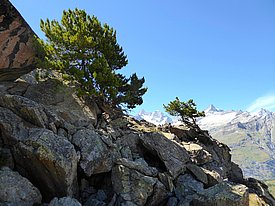 Rekord oberhalb von Zermatt? Die zähe, 11 cm hohe Arve auf 2765 m Meereshöhe, die Mitarbeiter der Eidgenössischen Forschungsanstalt für Wald, Schnee und Landschaft WSL am Unterrothorn gefunden haben scheint der am höchsten gelegene Baum der Schweiz zu sein. Wer Bäume kennt, die in noch grösseren Höhen wachsen, kann diese ins Logbuch des Schweizerischen Landesforstinventars (LFI) eintragen.
