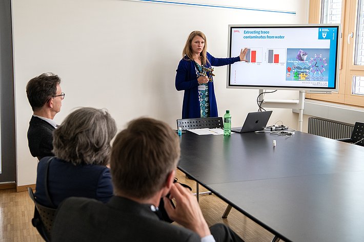 «Innovationen aus dem ETH-Bereich: Einblicke in die Forschung im Dienste der Schweiz» – dies erhielten Bundesrat Guy Parmelin und rund sechzig weitere hochrangige Gäste aus Politik, Forschung und Wirtschaft am SLF Davos.
