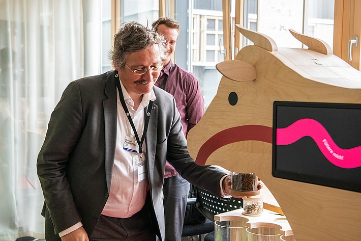 Forschende stellten an sechs Posten ihre Projekte und ihre innovativen Forschungsresultate vor: ¶