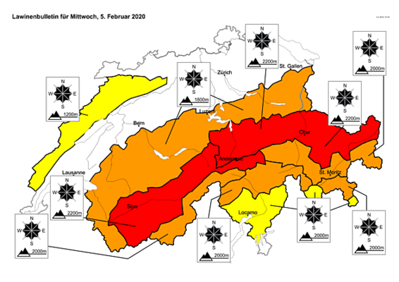 Lawinenbulletin: Es erscheint im Winter zwei Mal täglich und enthält als wichtigste Information eine Prognose der Lawinengefahr.