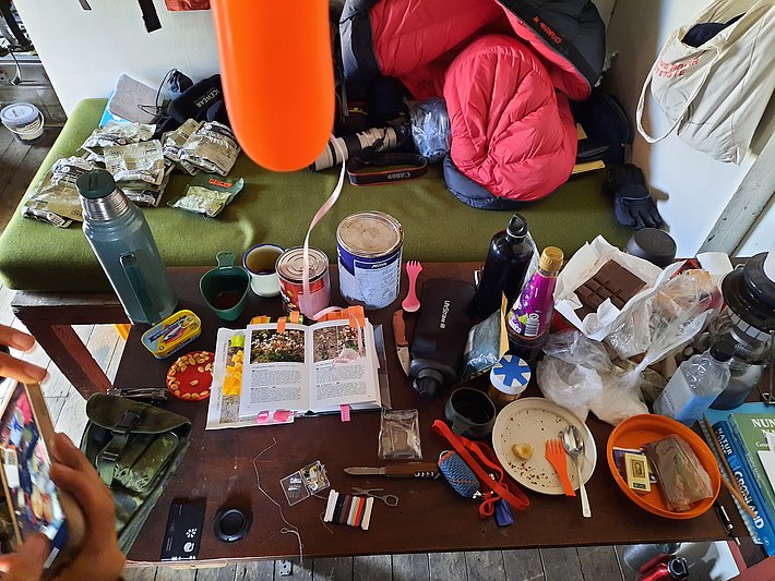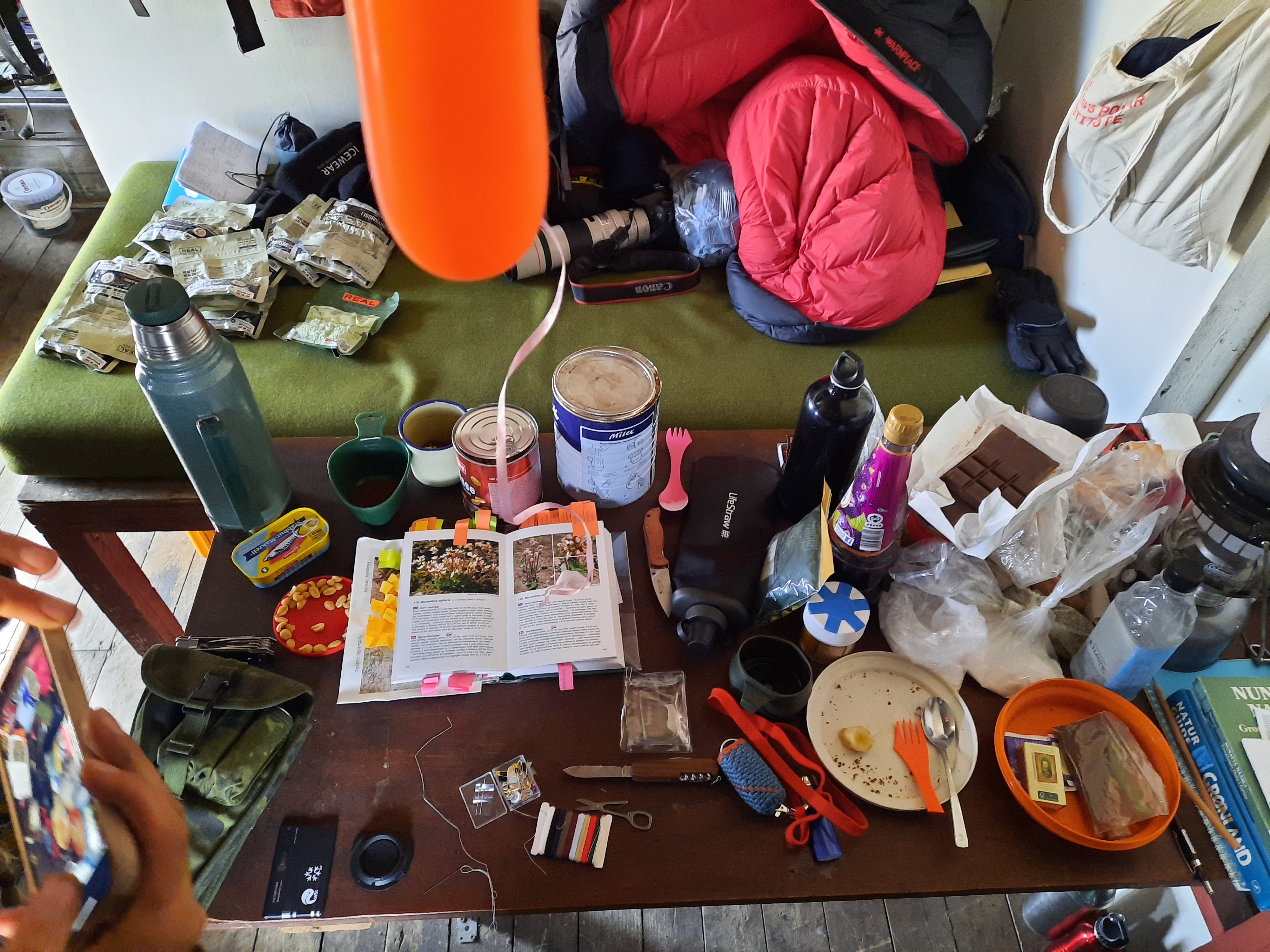 Die Hütte ist unser Basecamp, aber schon bald ziehen wir weiter – wir wollen höher hinaus. Wir wollen der Route und den Aufnahmeflächen von Schwarzenbach von Meereshöhe bis auf ca. 1300 m ü.M. genau folgen. Das bedeutet viel Arbeit auch in grösserer Höhe und zu weit weg von unserer guten Hütte (Zwei Wochen sind wirklich eine sehr knapp bemessene Zeitspanne). Also benötigen wir ein weiteres Camp auf circa 600 m Höhe, wie auch Schwarzenbach es hatte. Das heisst, wir packen Campingausrüstung, Essen für einige Tage, Waffen etc. und schlagen unser Lager am Berg auf.