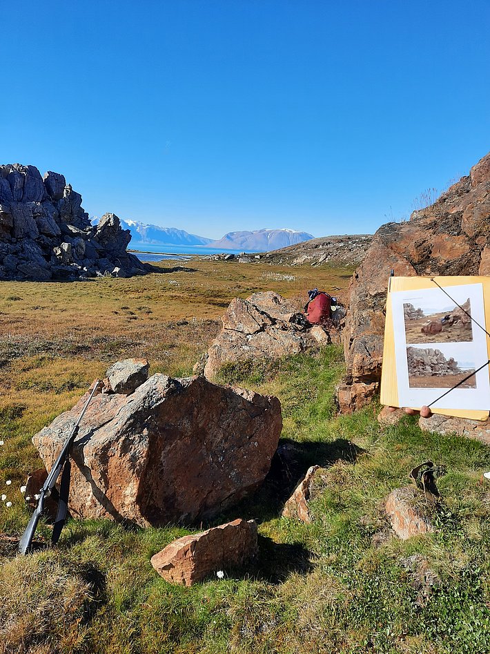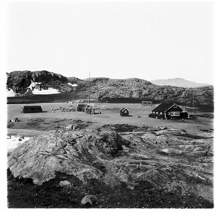 Auf Clavering Ø sollen wir nun also unsere nächsten zwei Wochen verbringen. Es gibt eine kleine historische Hütte, in der wir freundlicherweise wohnen dürfen (vielen Dank an NANOK, einen Verein, der alte Hütten saniert). Es gibt ein Tischchen und drei Pritschen – was brauchen wir mehr? Die Hütte ist aus dem Jahr 1931, und um uns herum finden wir Reste mehrerer Häuser aus der gleichen Zeit. Uns wird langsam bewusst, dass wir uns hier an einem (nicht nur botanisch) geschichtsträchtigen Ort befinden. 1931 errichtete hier Lauge Koch unter Mitarbeit von Gelting (!) eine grosse Forschungsstation mit mehreren Häusern. 1945 zerstörten leider deutsche Soldaten die Station - bis auf die kleine Hütte, in der wir jetzt wohnen.