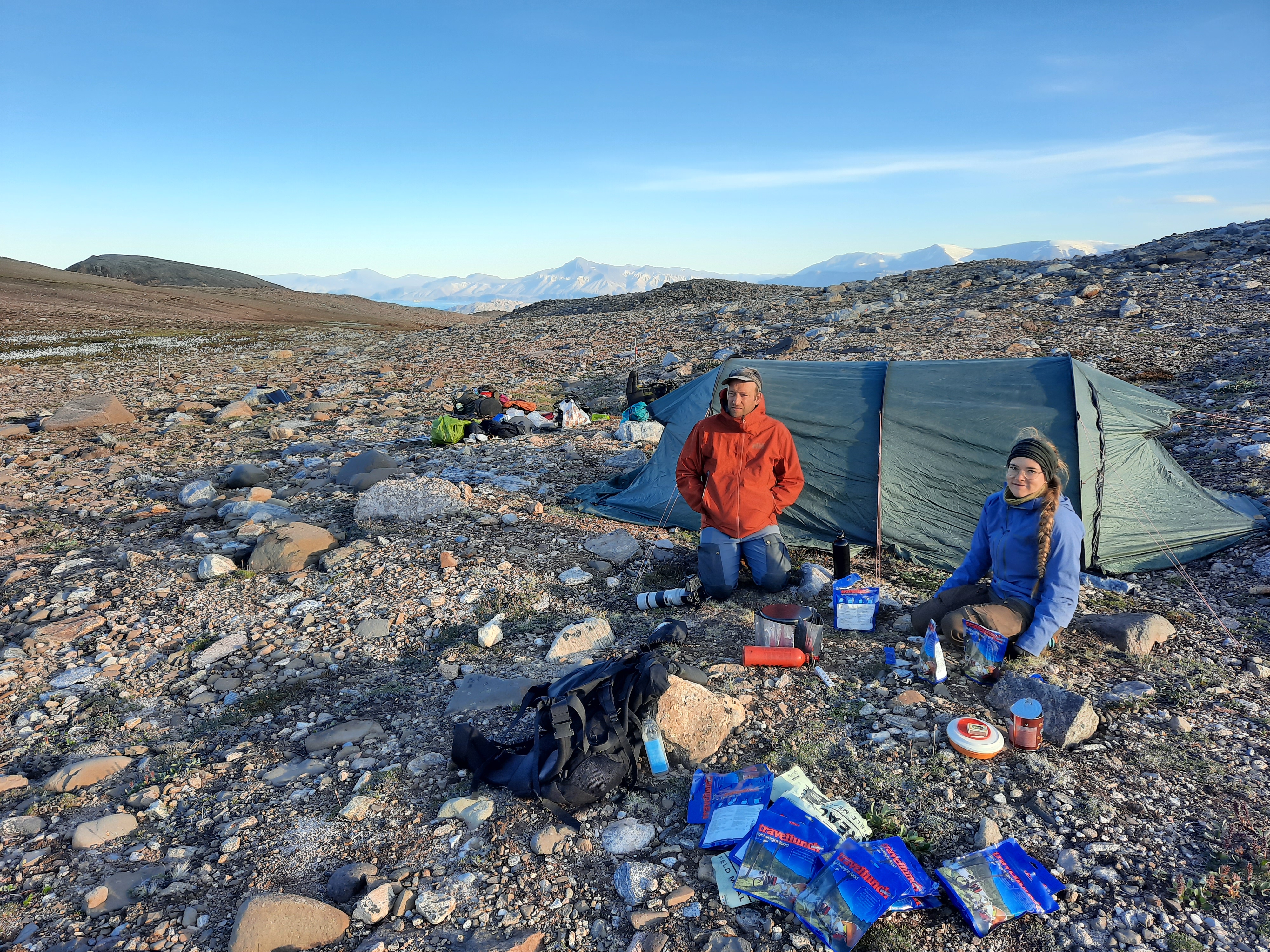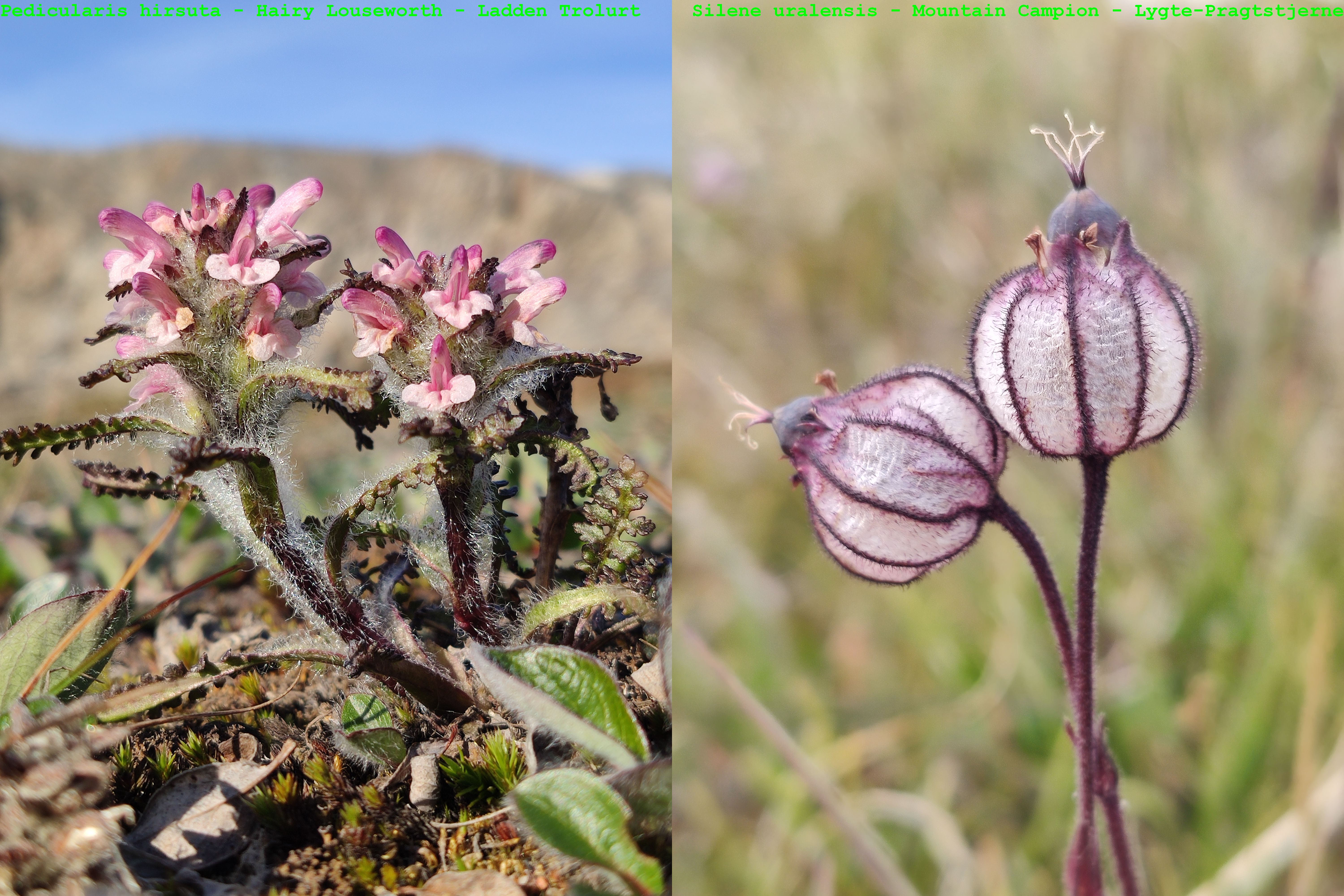 Schwarzenbach hat an 19 Orten alle Pflanzenarten notiert, die er gefunden hat. Zusätzlich hat er entlang von Routen alle Arten aufgeschrieben und vor allem hat er von allen Arten beim Abwärtslaufen die obersten Vorkommen notiert. Dieses Vorgehen haben wir so gut wie möglich kopiert. Aufgrund guter Fotodokumentation von Schwarzenbach konnten wir die meisten Orte wiederfinden. Bei gutem Wetter erreichten wir bereits in den ersten Tagen auch den höchsten Punkt, den Gipfel des Østtinden auf circa 1275 m. Von dort notierten wir auf dem Weg bergab die höchsten Vorkommen aller Pflanzenarten. Für alle 100m-Höhenstufen notierten wir alle Arten erneut, so dass wir jetzt ihre heutige Höhenverbreitung kennen und mit der früheren vergleichen können. Die Arbeit war schön aber auch sehr lang und hart. Wegen der fehlenden Nacht und weil wir schönes Wetter ausnutzen wollen, waren wir mehrfach erst nach Mitternacht wieder bei Zelt oder Hütte.