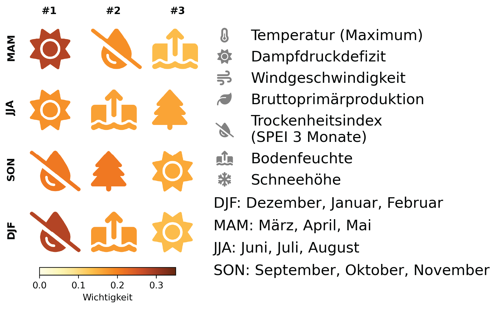 Für ihre Analyse hat sie auf Satellitendaten zurückgegriffen. Diese erkennen Hitzepunkte aus dem All. In Kombination mit Informationen zum Gelände ist klar, ob dort ein Wald, ein Feld, ein Gebäude oder etwas anderes brennt. Für den Starttag von Waldbränden hat sie die dort herrschenden, meteorologischen Bedingungen und den Zustand von Boden, Vegetation und – so vorhanden – Schneedecke bestimmt. Insgesamt sieben Kennzahlen wie Windgeschwindigkeit, Bodenfeuchte und Temperatur hat sie so für acht europäische Klimaregionen und Gebirgszüge analysiert. «Wir vergleichen den Zustand dieser Variablen am Starttag von Waldbränden mit dem Zustand an Tagen, an denen keine Waldbrände auftreten», beschreibt die Klimawissenschafterin ihre Vorgehensweise. Auch die vier Jahreszeiten flossen in die Studie ein.