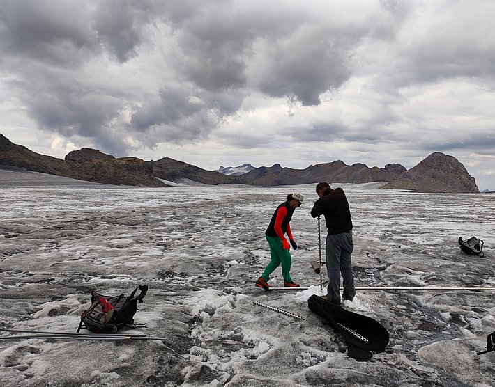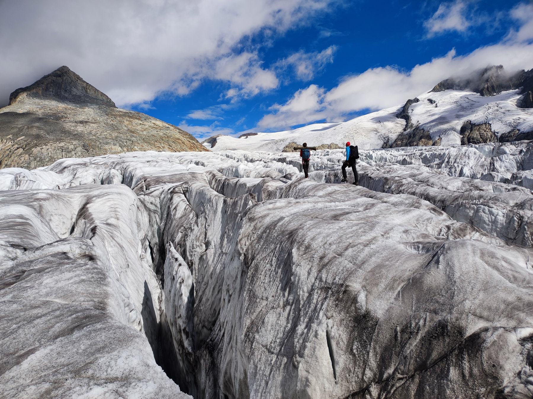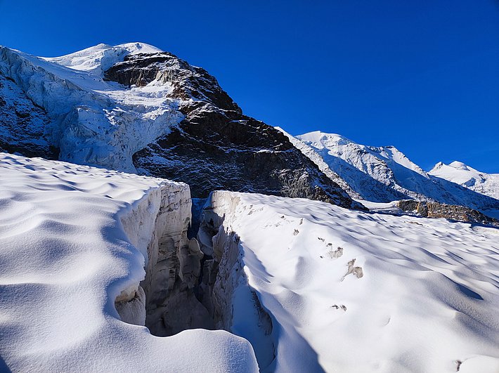 Das Einschneien erfolgte im Winter 2021/22 für die meisten Gletscher Anfang November, was ungefähr der Norm entspricht. Allerdings verschwand die Schneedecke auf allen Höhenstufen rund einen Monat früher als üblich. Die über 80-jährige Messreihe auf dem Weissfluhjoch (GR, 2540 m) zeigte das zweitfrüheste je gemessene Ausaperungsdatum (6. Juni). Die Sommermonate waren rekordmässig heiss, sonnig und wolkenlos. So sank z.B. an der MeteoSchweiz-Station Jungfraujoch (VS, 3571 m) zwischen Juni und August an 41 Prozent aller Tage die Temperatur nie unter den Gefrierpunkt (durchschnittlich sind es 25 Prozent). Der Sommer war auch extrem trocken. Bis Mitte September gab es im Hochgebirge nur wenige Zentimeter Neuschnee.