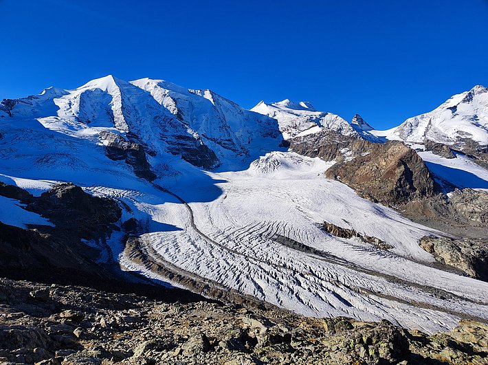 Die Abschmelzraten übertreffen die bisherigen Rekorde aus dem Hitzesommer 2003 bei weitem: Die Gletscher haben im Jahr 2022 rund 3 Kubikkilometer Eis verloren, das sind mehr als 6 Prozent des verbleibenden Volumens. Als Vergleich: Bislang bezeichnete man Jahre mit 2 Prozent Eisverlust als «extrem». Besonders einschneidend war der Verlust für kleine Gletscher. Der Pizolgletscher SG, der Vadret dal Corvatsch GR und der Schwarzbachfirn UR sind praktisch verschwunden – die Messungen wurden eingestellt. Die Entwicklungen zeigen aber auch, wie wichtig Gletscher in heissen und trockenen Jahren für Wasserhaushalt und Energieversorgung sind. Alleine die Eisschmelze in Juli und August hätte genügend Wasser geliefert, um sämtliche Stauseen der Schweizer Alpen von null auf zu füllen.