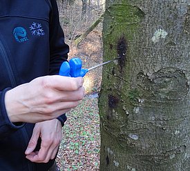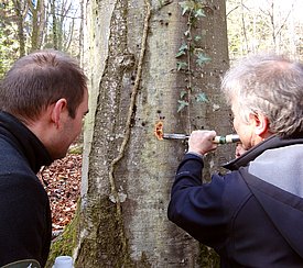 Die Phytopathologen nahmen in der nahen Umgebung der erkrankten Buchen unter acht gesunden Bäumen auch Bodenproben. "Der Nachweis des Erregers im Boden war besonders langwierig", sagt Daniel Rigling, Leiter der Gruppe Phytopathologie. "Wir mussten abwarten, bis sich der Erreger auf speziellen Köderblättern vermehrte, die wir den Bodenproben hinzufügten; erst aus den Blättern konnten wir ihn dann isolieren und bestimmen."