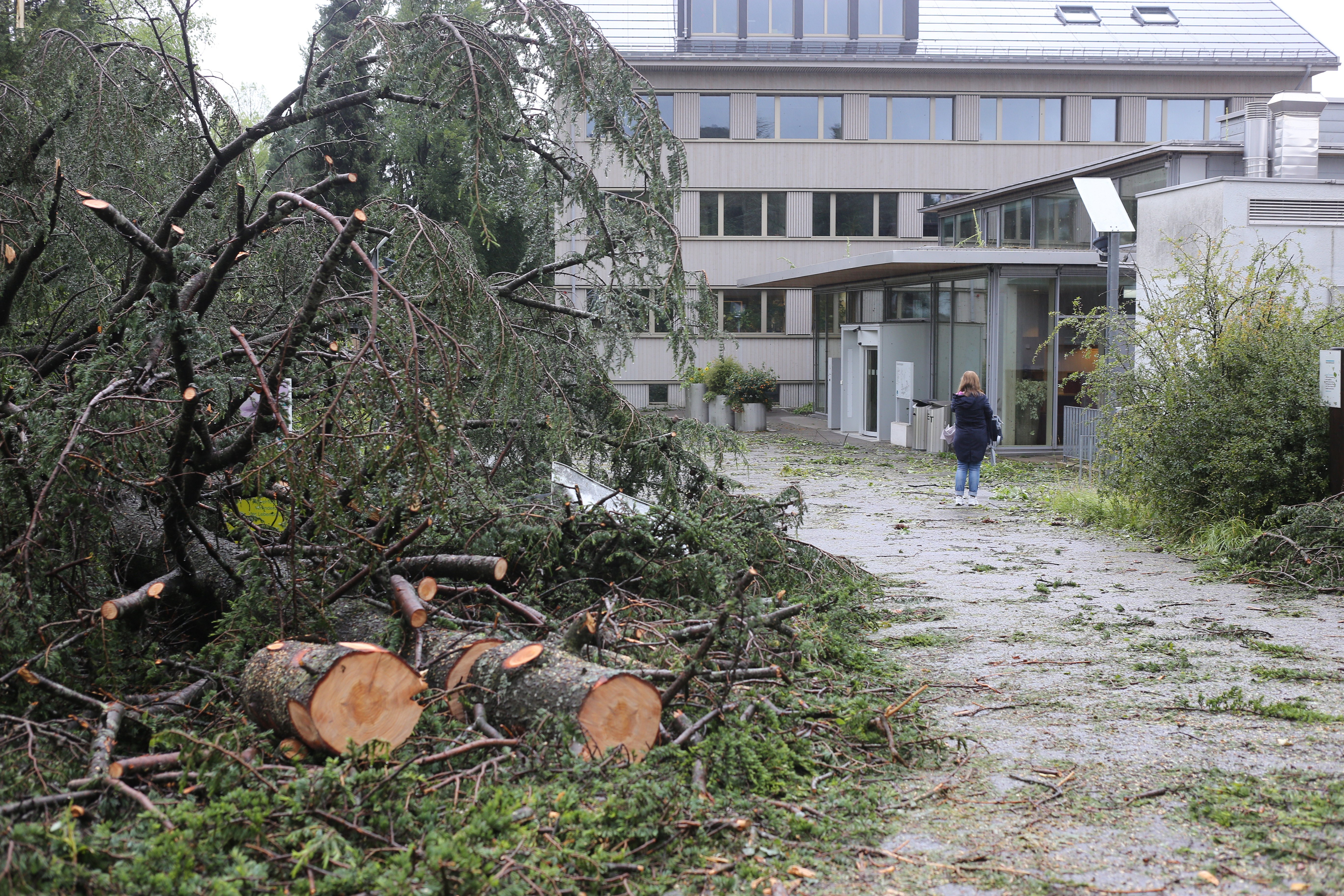 Der Sturm vom 13. Juli 2021 knickte in der Region Zürich zahlreiche Bäume wie Zündhölzer um. Auch der alte Baumbestand an der Eidgenössischen Forschungsanstalt WSL in Birmensdorf ist betroffen. Es wird einige Tage dauern, bis die Forstdienste die Schäden an den Wäldern abschätzen können. Die starken Niederschläge in der Schweiz beschäftigen auch die Forschenden, die sich mit Hochwasservorhersagen und Murgängen beschäftigen.