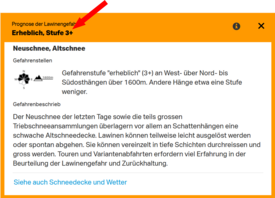 Ab diesem Winter unterteilt das SLF die Gefahrenstufen im Lawinenbulletin feiner. Die neue Zwischenstufe gibt an, ob die Gefahr eher im unteren Bereich, etwa in der Mitte oder eher im oberen Bereich der Gefahrenstufe liegt. Anwenderinnen und Anwender erhalten damit eine zusätzliche Information für die Einschätzung des Risikos.