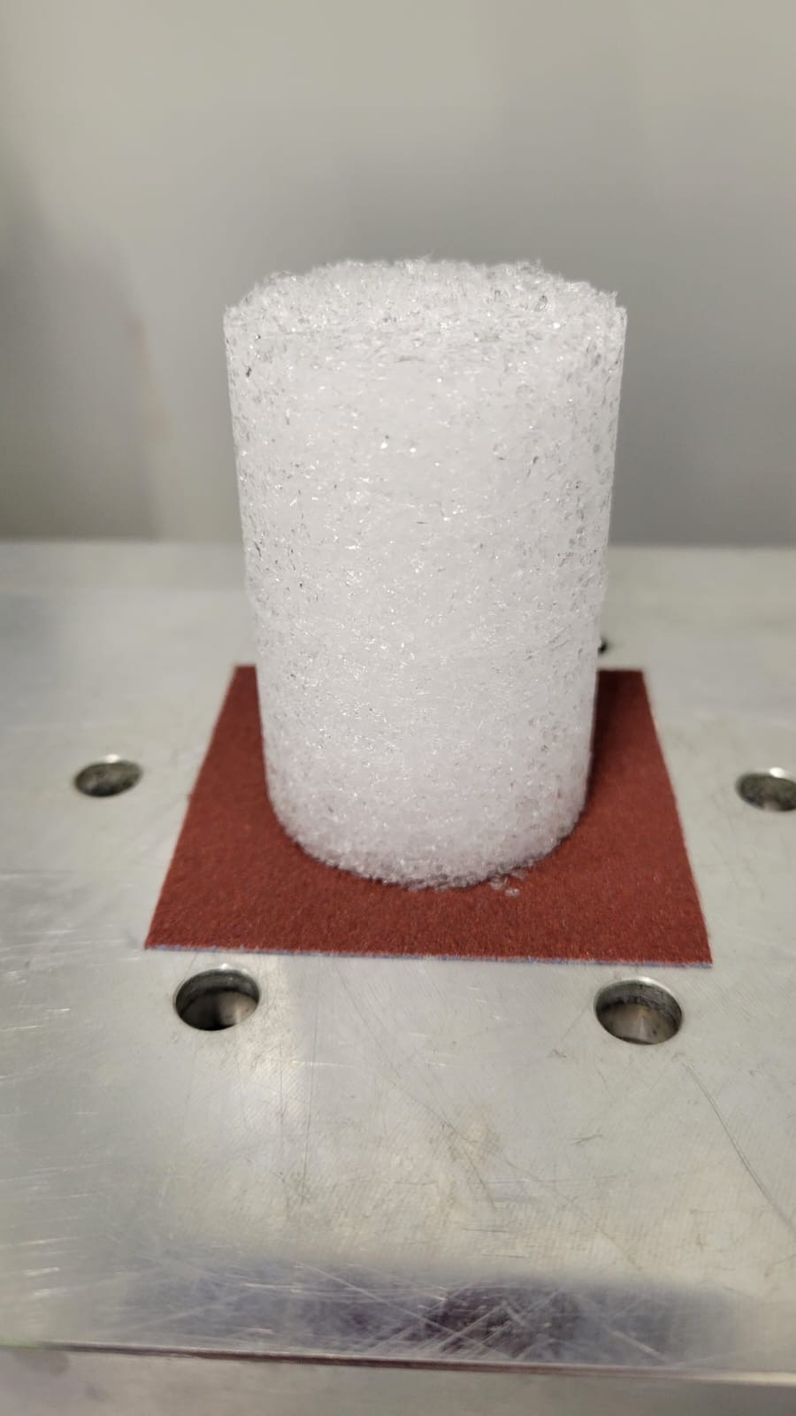 So brach auch schon die dritte und letzte Woche meines Praktikums an, als mir Fabian einen Stick mit den Daten vom Zerdrücken unserer Zylinder-förmigen Proben brachte und ich die Höhenpunkte, sowie die Fläche unter der Linie herausfinden sollte. Ich begann damit und ging für etwas Abwechslung dazwischen ins Labor, um wieder Eis zu zerkleinern, denn ich darf diese Woche allein neue Proben machen, doch dafür brauchte ich noch mehr vom groben «Schnee».