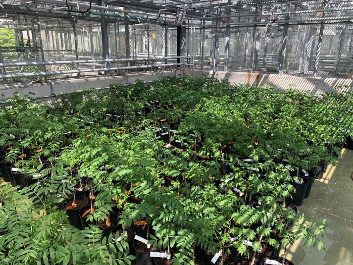 Die Forschenden werden Labor- und Gewächshausexperimente mit verschiedenen gepfropften Eschengenotypen aus der Schweiz und Dänemark durchführen. Alle Experimente, die mit dem Eschenprachtkäfer in Zusammenhang stehen, werden im Hochsicherheitsgewächshaus des Nationalen Pflanzenschutzlabors an der WSL stattfinden.