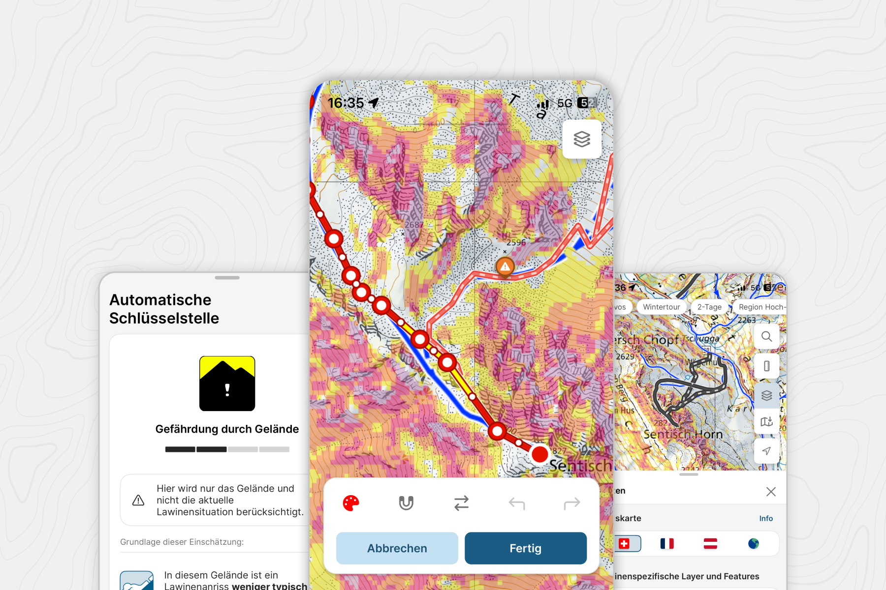 Künftig ist es noch einfacher, eigene Touren zu erstellen und die eigene Tourensammlung zu verwalten. Gleichzeitig wurde die Detailansicht der Schlüsselstellen überarbeitet, um die Gefahren im Gelände besser zu vermitteln. «Ausserdem funktioniert die Synchronisation zwischen PC und Smartphone jetzt schneller», sagt Fisch. Dadurch wird es noch komfortabler, die nächste Tour in Ruhe daheim am grossen Bildschirm zu planen und auf ein mobiles Endgerät zu überspielen.