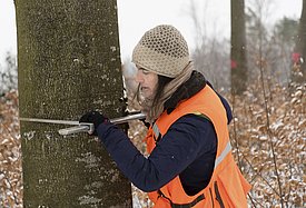 «Wir wollen herausfinden, ob und wie es möglich ist, mit diesen wenigen Messungen am stehenden Baum ein genaues Bild von der Biomasse eines Waldes zu bekommen, und dann auch aller Wälder der Schweiz. In unserem Projekt verfeinern wir die schon bekannten Mess- und Schätzmethoden. Dafür brauchen wir genaue Daten aus einer Anzahl gefällter Bäume», sagt Esther Thürig.