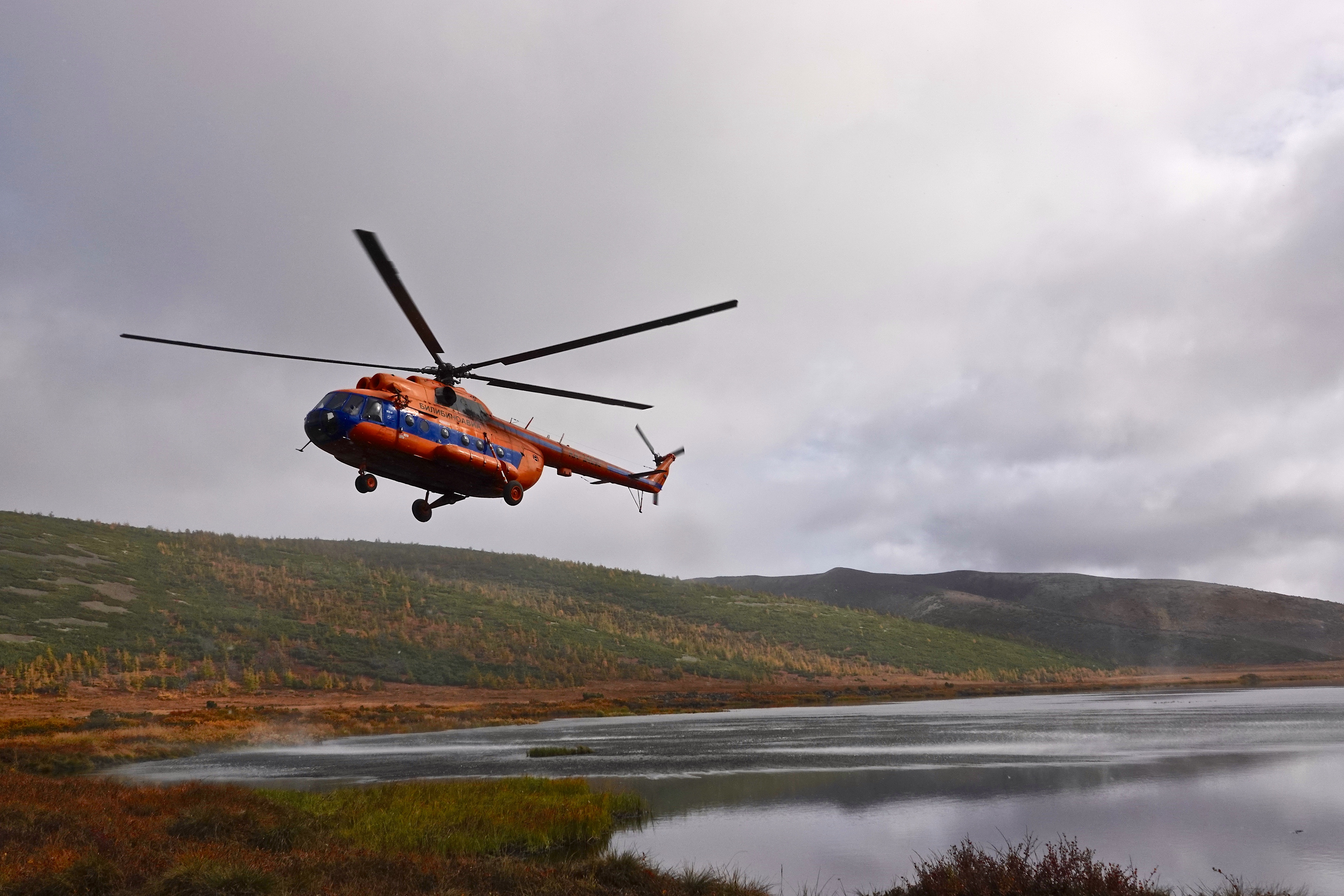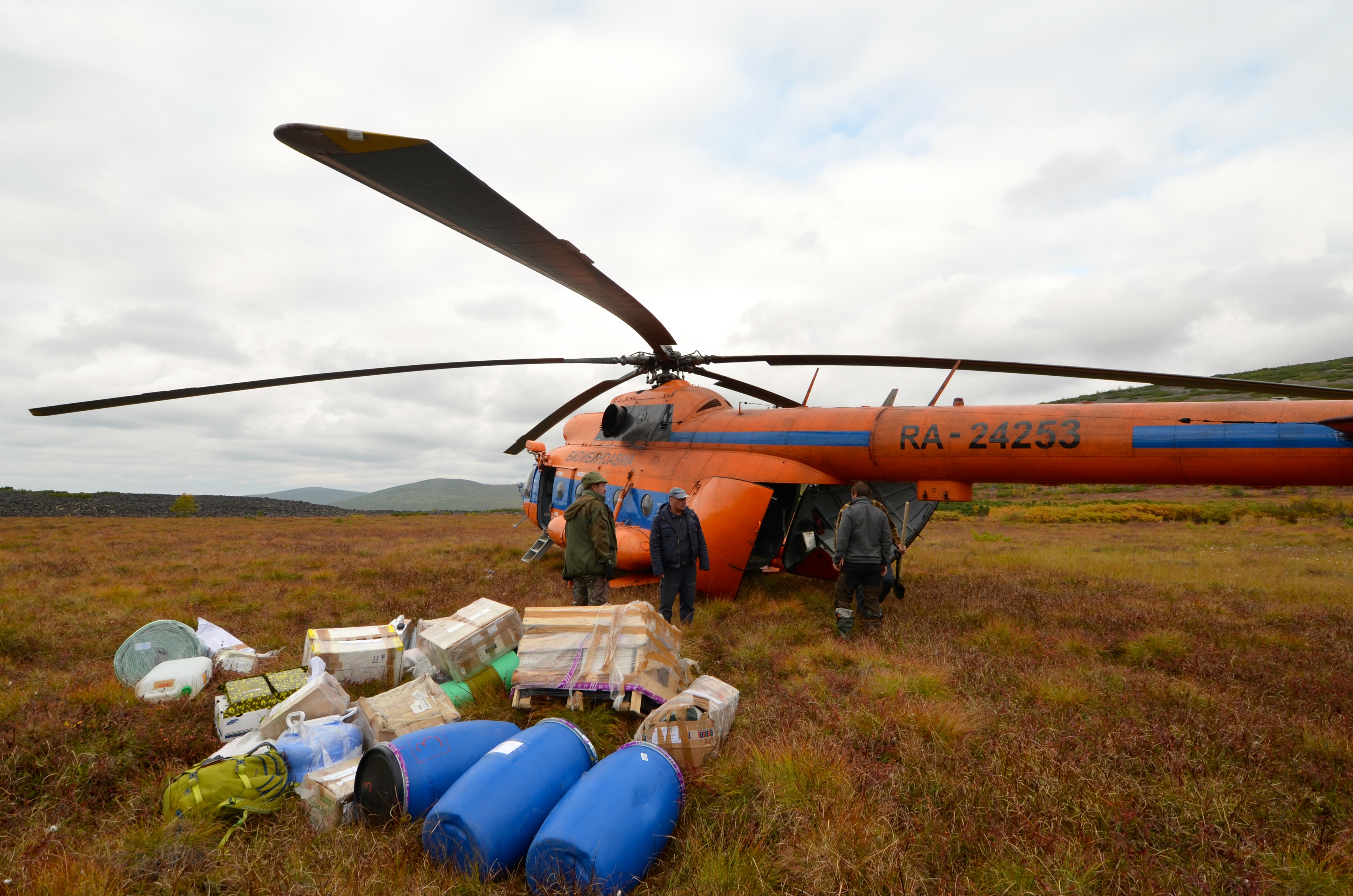 The pilot expedition (including international transfers), took place from mid-August to early-September 2019 (18.08. to 08.09.). International partners arrived in Moscow and took domestic flights to Magadan, and then on to Kiperveem (67°50’30.80’’N, 166°08’38.21’’E), where a local logistical team was already in place. Overland travel to the volcano would be prolonged and its success uncertain due to the swampy terrain and major river crossings required and thus helicopter support is essential to efficient fieldwork. Both a large transportation helicopter and a smaller Eurocopter were available for hire in Kiiperveem, from which we reached the volcano in about one-hour flight time.
