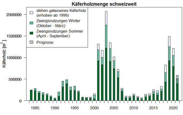 The project aims to assess how the abundance of spruce bark beetles affects populations of woodpeckers such as the three-toed woodpecker. Long-term datasets on the annual amount of sanitation-felled 'Käferholz' (spruce timber infested by bark beetles), bark beetle trap catch, and woodpecker abundance data, along with environmental variables, are being used to model these relationships. Woodpecker monitoring data were provided by the Swiss Bird Observatory (Vogelwarte Sempach). The project is co-directed by Gilberto Pasinelli of the Swiss Bird Observatory.