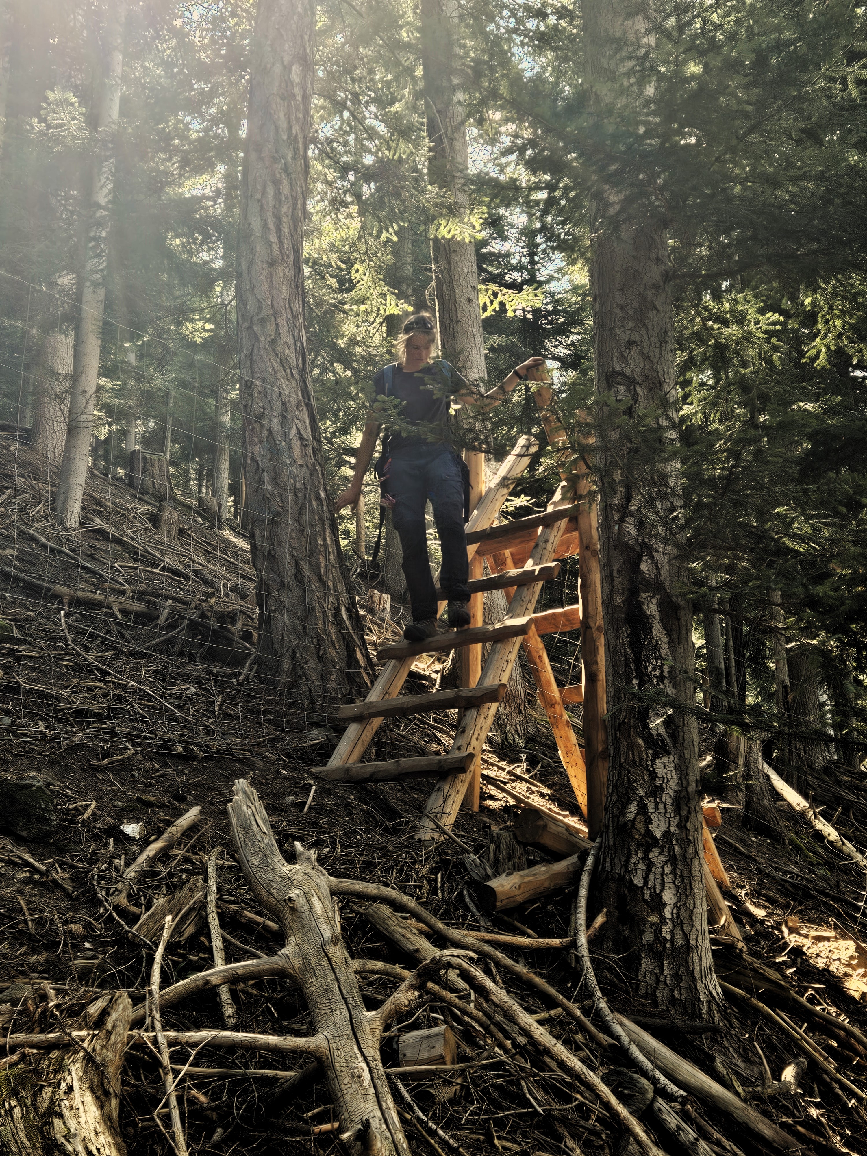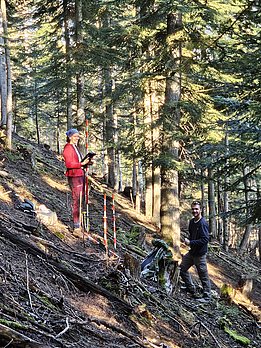 Im Sommer 2023/2024 konnte auch die zweite grosse Verjüngungsinventur in acht von zehn Versuchsflächen durchgeführt werden, diese wurde ein Jahr nach der Eingriffsinventur gemacht. Das wiederholte Monitoring der Verjüngungsdichte, des Deckungsgrades von Verjüngung und Bodenvegetation, der demografischen Entwicklung individueller Verjüngungspflanzen sowie die Aufnahme des Mikrostandorts inkl. Boden und Licht werden im Jahr 2025 mit den Aufnahmen auf den letzten zwei Versuchsflächen Pfäfers und Ormont-Dessus finalisiert. Die Samenmasterhebungen der vier Hauptbaumarten Fichte, Tanne, Bergahorn und Buche sind 2025 auf allen Versuchsflächen geplant.
