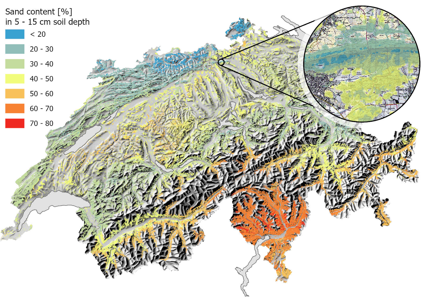 Die Bodenbildungsfaktoren werden aus einem umfassenden Set von räumlich kontinuierlichen Kovariablen abgeleitet, die Informationen über Topographie, Vegetation, Klima und Geologie enthalten. Die Terrain Attribute, abgeleitet aus digitalen Geländemodellen und geglättet mit unterschiedlichen Faltungsfilter, bilden dabei den Einfluss von verschiedenen räumlichen Skalenbereiche ab. Informationen zur Vegetation werden aus hochauflösenden Satellitenbildern und LIDAR-Punktwolken abgeleitet.