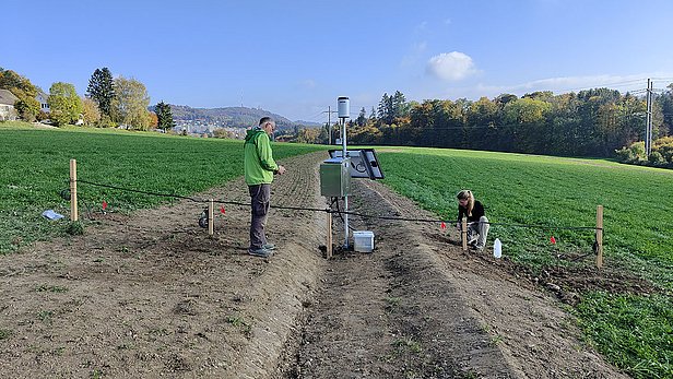 Kooperation FinanzierungUm der vorhergesagten zunehmenden Häufigkeit von Trockenheit und intensiveren Regenfällen zu begegnen, sucht der Agrarsektor nach Bewirtschaftungsmethoden, um Wasser bei überschüssigem Niederschlag zurückzuhalten und für Zeiten der Knappheit zu speichern. In diesem Projekt wollen wir die Wasserrückhaltewirkung einer dieser Maßnahmen, die als Keyline-Design bezeichnet wird, bewerten. Geplant ist eine mehrjährige Feldstudie auf einer Landwirtschaftsparzelle mit einem Multisensor-Bodenfeuchtemonitoring. Damit soll die Wirksamkeit von Keyline-Systemen in Dürresituationen aufgezeigt werden. Diesen Sommer haben wir bereits erste Bodenfeuchtemessungen mit Drohnen-basierten Fernerkundungs- und In-situ Messsystemen auf Agrarflächen im Jurapark Aargau und in Uitikon durchgeführt.