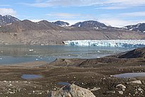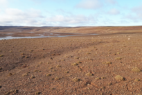 Station Nord: Boden (Oberschicht) von der Villum Forschungsstation in Nordgrönland. Der Boden ist sporadisch mit Saxifraga bewachsen und ab 40 cm Tiefe kommt Permafrost vor.