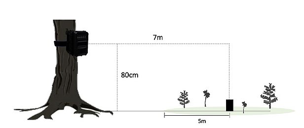 Zusätzlich werden Kameras an mindestens 25 Standorten im Wald bei der nächstmöglichen Gruppe von bei den Huftieren beliebten Baumarten angebracht, um zu beobachten, welche Huftierarten den Verbiss verursachen.