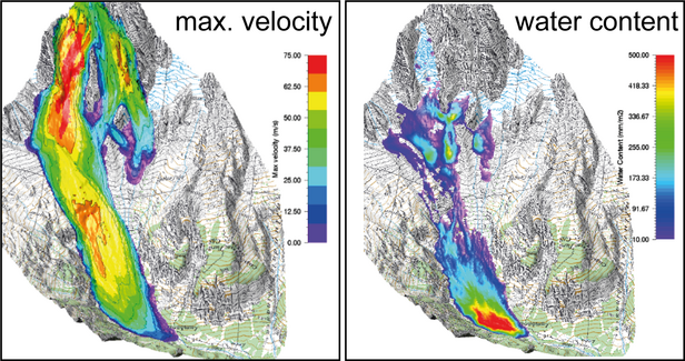In order to better understand these phenomena and assess and set up large scale hazard maps in areas that are prone to rock-ice avalanches, scientists in Switzerland (CERC - SLF Davos) and India (Building Institute in Roorkee) are teaming up to gather field data, identify unstable rock/ice masses, and perform thermo-mechanical simulations – at the large-scale – to predict the danger of rock/ice avalanches, such as the recent event in Chamoli. The numerical modelling is performed using a software that has been developed by the research team at SLF, RAMMS (RApid Mass Movement Simulation), which is aimed at modelling gravitational mass movements and is made of several modules to model snow avalanches, rockfall and more recently, rock-ice avalanches.