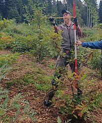 Projekte nutzen das Testpflanzungsnetz, um eigene Forschungsfragen zu beantworten. So wurden 2024 und 2025 auf verschiedenen Flächen die Wechselwirkungen zwischen den Bodengemeinschaften und sechs unserer gepflanzten Laubbaumarten untersucht. Das Root Traits Strategies Projekt wird durch Gemma Rutten von der Uni Bern geleitet. Um mehr über die Bodendiversität herauszufinden haben wir 2025 auf 15 Flächen Bodenproben unter Tannen, Bergahornen, Traubeneichen, Zerreichen und Douglasien entnommen.