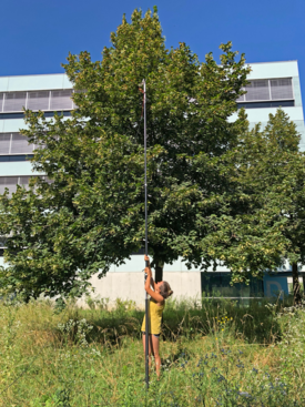 We measure tree transpiration throughout the growing season and calculate its cooling effect, regularly assess tree water stress and leaf responses to heat and drought, and monitor the microclimate in and outside the tree canopy. By comparing species with contrasting functional traits (e.g., diffuse-porous vs. ring-porous) growing on the EPFL campus we want to find out which trees are dealing best with hot droughts during the summer while efficiently cooling their environment. The project will monitor trees and the urban microclimate during four years, providing the opportunity to capture potential extreme weather conditions (e.g. heatwaves) and understand the interactions during these.