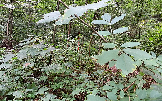 - Modul 2: Der Einfluss der wildlebenden Huftiere auf die natürliche Baumverjüngung wird auf denselben Stichprobenflächen im Herbst erhoben. Somit kann auch bei Laubbäumen zwischen dem Verbisseinfluss im Sommer und demjenigen im Winter unterschieden werden. Nebst dem Verbiss werden auch Fegeschäden quantifiziert. Dabei wird mittels Aufnahme aller Baumverjüngung im Vollkreis die Dichte der Baumverjüngung über die Jahre verfolgt. Mittels Messung der Baumhöhe, der Endtrieblängen und der Beurteilung des Verbisses und weiterer Endtriebschäden an den nächsten 2 Bäumchen je Höhenklasse und Baumart (k-Baum Methode) wird der Verbisseinfluss abgeschätzt. Standortsfaktoren wie Licht, Deckungsgrad und Höhe der Alternativäsung (Brombeeren, Holunder, Kräuter, Gräser etc.) und die Deckung für die wildlebenden Huftiere werden ebenfalls aufgenommen. Verantwortliche Andrea Doris Kupferschmid, WSL.