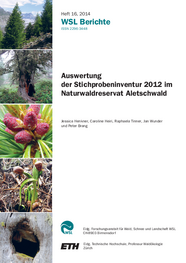 Henkner J., Heiri C., Tinner R., Wunder J., Brang P. (2014) Auswertung der Stichprobeninventur 2012 im Naturwaldreservat Aletschwald. WSL Berichtev 16. Birmensdorf: Eidg. Forschungsanstalt für Wald, Schnee und Landschaft WSL. 66 S.
