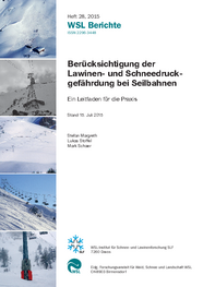 Margreth S., Stoffel L., Schaer M. (2015) Berücksichtigung der Lawinen- und Schneedruckgefährdung bei Seilbahnen. Ein Leitfaden für die Praxis. WSL Berichte 28. Davos; Birmensdorf: WSL-Institut für Schnee- und Lawinenforschung SLF; Eidg. Forschungsanstalt für Wald, Schnee und Landschaft WSL. 43 S.