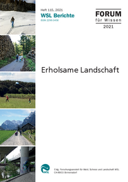 Bürgi M., Tobias S., Hunziker M., Bauer N., Bebi P., Kienast F. (Eds.) (2021) Erholsame Landschaft. WSL Berichte 115. Forum für Wissen 2021. Birmensdorf: Eidg. Forschungsanstalt für Wald, Schnee und Landschaft WSL. 76 S. doi.org/10.55419/wsl:28936