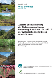 Bergamini A., Ginzler C., Schmidt B.R., Bedolla A., Boch S., Ecker K., … Holderegger R. (2019) Zustand und Entwicklung der Biotope von nationaler Bedeutung: Resultate 2011–2017 der Wirkungskontrolle Biotopschutz Schweiz. WSL Berichte 85. Birmensdorf: Eidg. Forschungsanstalt für Wald, Schnee und Landschaft WSL. 104 S.