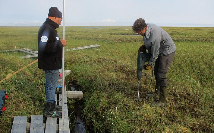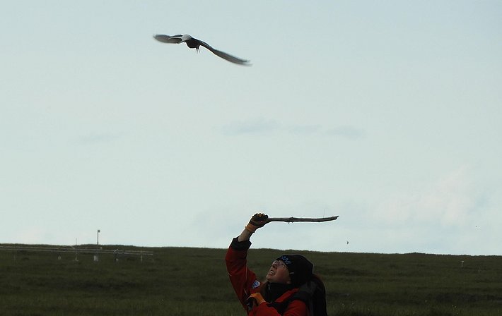 Meine eigentliche Forschungsarbeit lief erfolgreich und reibungslos (von ein paar tausend Mücken abgesehen). Sie war eine Fortsetzung eines Schweizer Nationalfondsprojektes, bei dem wir den Zusammenhang zwischen Vegetation, Pflanzenwachstum und Klima (speziell Schnee und Temperaturen) an über 100 Klimastationen untersuchten. Im jetzigen Folgeprojekt beziehen wir weitere Klimastationen in anderen kalten Regionen der Welt ein. Zu dem Zweck machte ich auf Samoylov Vegetationsaufnahmen an Klimastationen, mass Pflanzeneigenschaften wie Blattflächen etc. und erfasste Daten an der Bodenoberfläche, die zusammen mit Drohnen- und Satellitendaten analysiert werden können.
