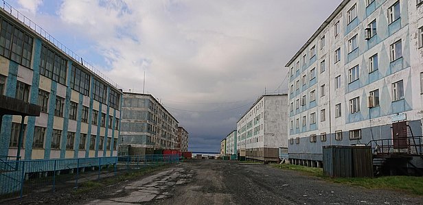 Nächster Stop ist Tiksi. Die Stadt war zu Sowjetzeiten glorreicher nördlicher Vorposten bei der Erschliessung der russischen Arktis. Doch nach dem Zusammenbruch der Sowjetunion wurde Tiksi wirtschaftlich «fallengelassen». Seitdem haben die Häuserblöcke aus der kommunistischen Zeit wohl keine frische Farbe mehr gesehen.