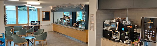 Die Cafeteria ist der Pausentreffpunkt für die SLF-Mitarbeitenden. Montags bis freitags sind jeweils zwei Mittagsmenüs im Angebot (eines davon vegetarisch oder vegan). Ausserhalb der Öffnungszeiten stehen Getränke- und Verpflegungsautomaten zur Verfügung.