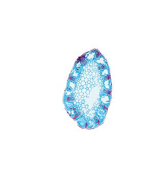 Culm-diameter 0.5-1 mm, center full, radius of culm in relation to wall thickness 1:1. Outline oval. Culm-center full, containing unlignified cells. Center with net-like aerenchyma (stellate). Epidermis papillous (bulliform). Epidermis cells inside thin,