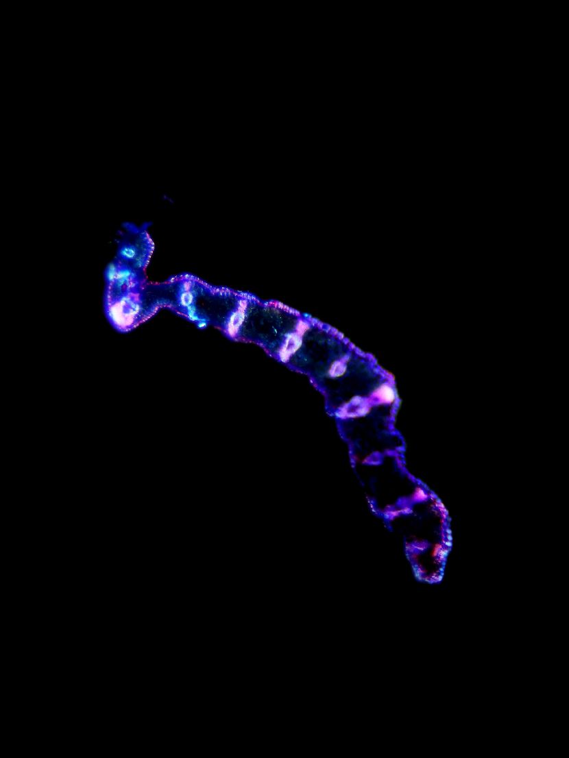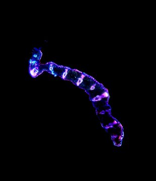 Outline wavy. Upper epidermis cells in one row. Vascular bundles centered between the upper and lower side of the leaf.