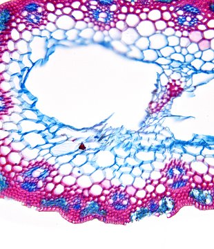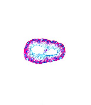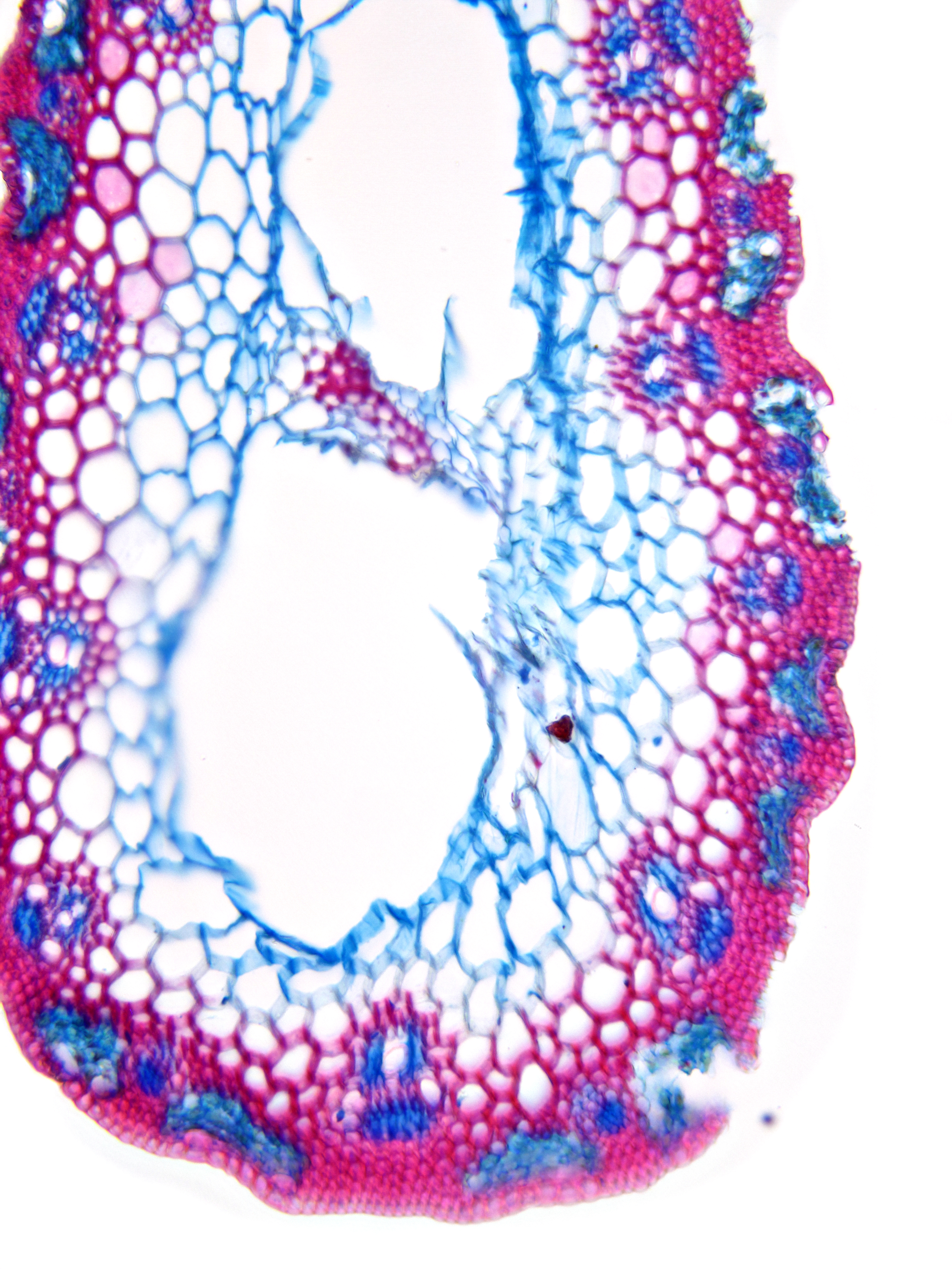 Culm-diameter 0.5-1 mm, wall very large, radius of culm in relation to wall thickness approximately 1:0.75. Outline circular with a smooth surface. Culm-center hollow and surrounded by many large thin-walled, not lignified cells. Epidermis-cells thick-wal