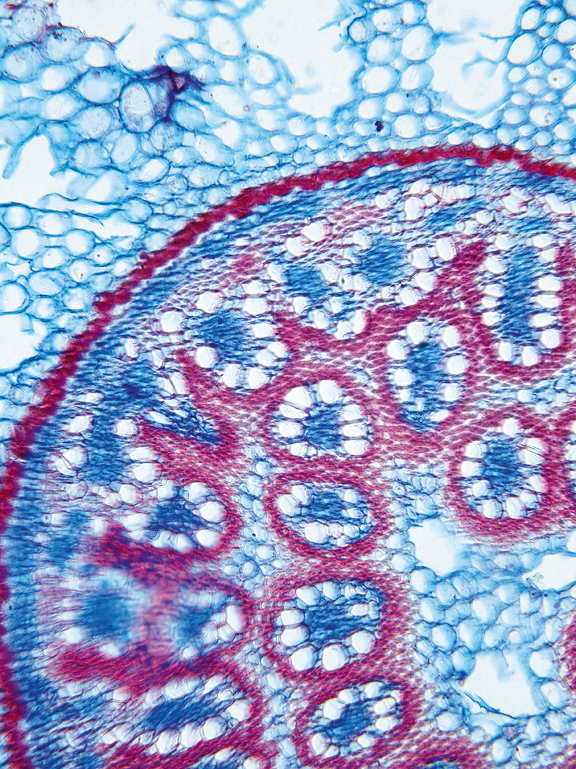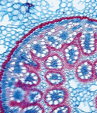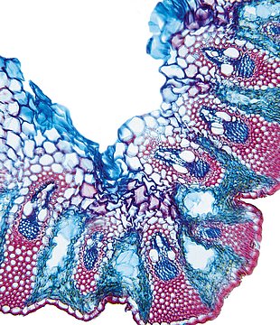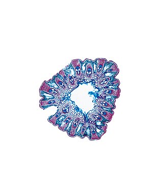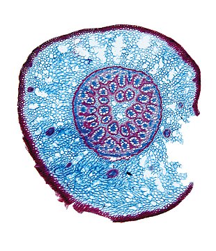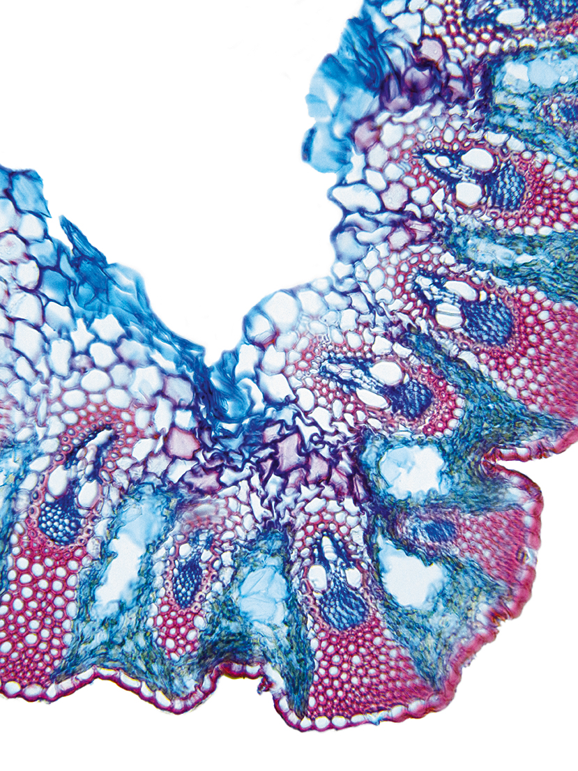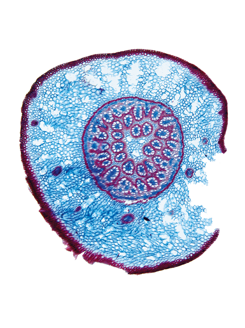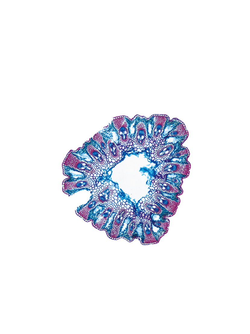 Culm-diameter 1-2 mm, wall very large, radius of culm in relation to wall thickness approximately 1: 0.75. Outline circular, with rips. Culm-center hollow and surrounded by many large thin-walled, not lignified cells. Center with net-like aerenchyma (stel