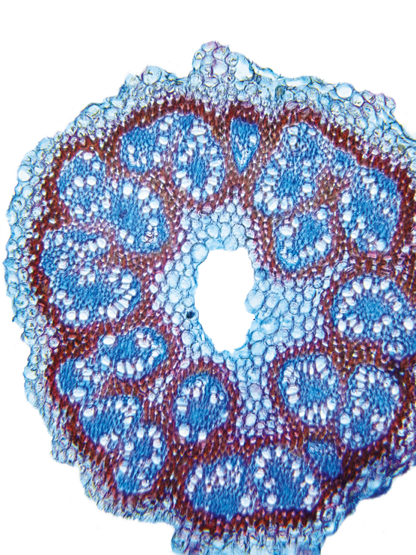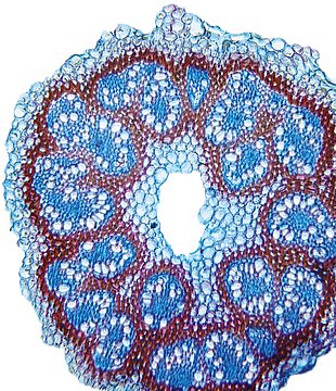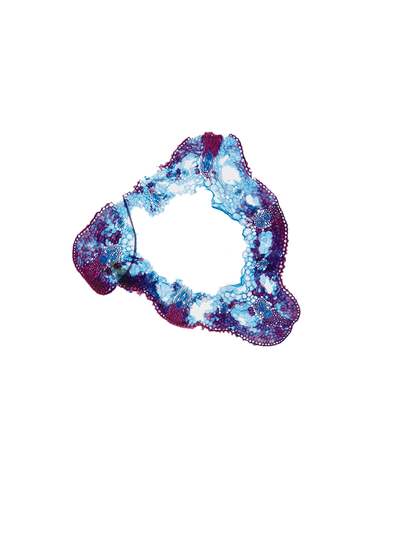 Culm-diameter 1-2 mm, wall large, radius of culm in relation to wall thickness approximately 1: 0.5. Otline triangular, acutely. Culm-center hollow and surrounded by many large thin-walled, not lignified cells. Center with net-like aerenchyma (stellate).