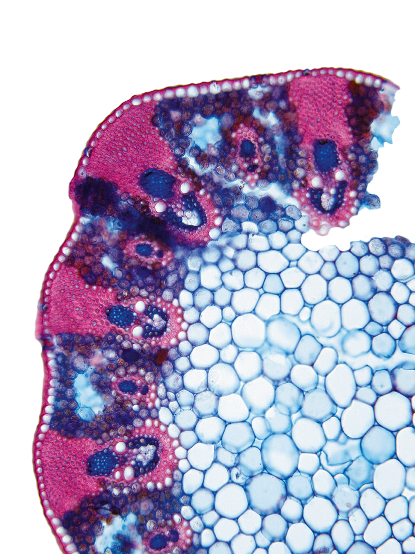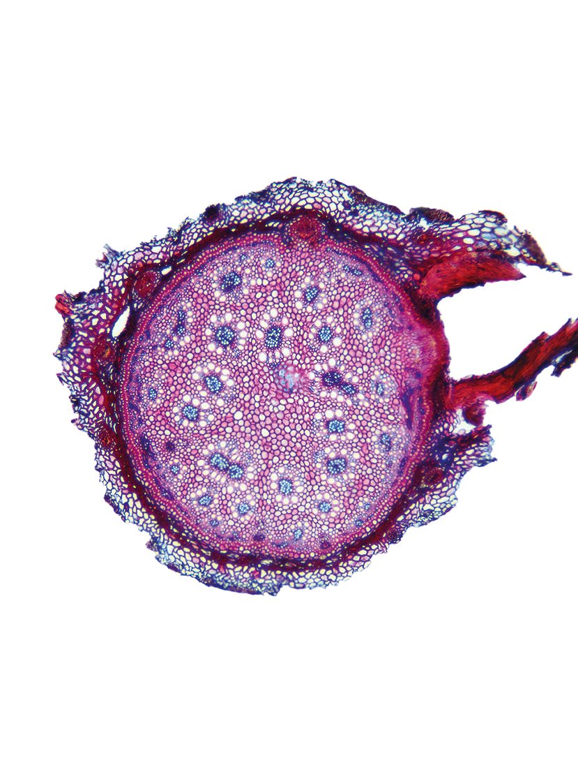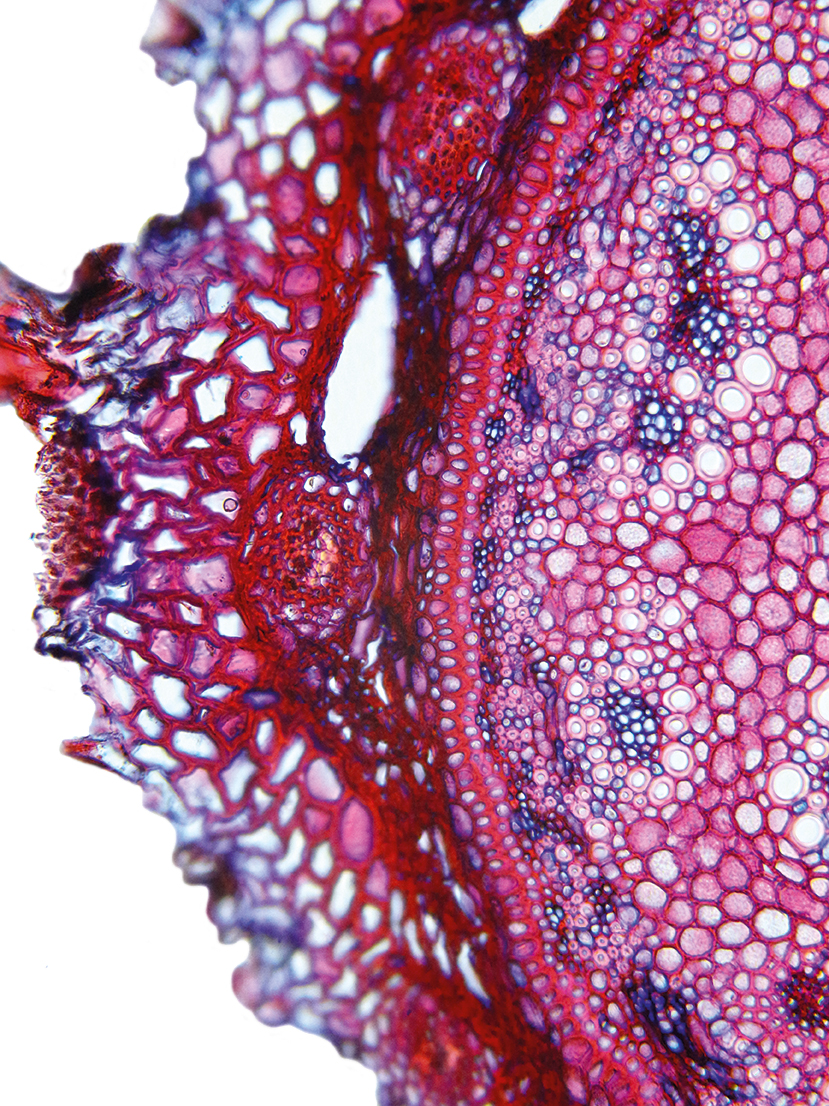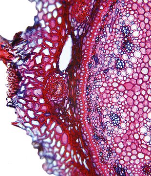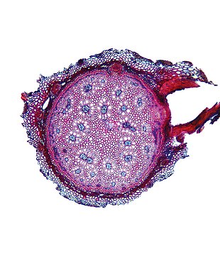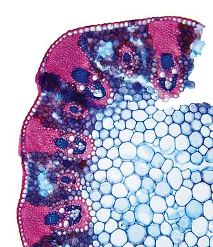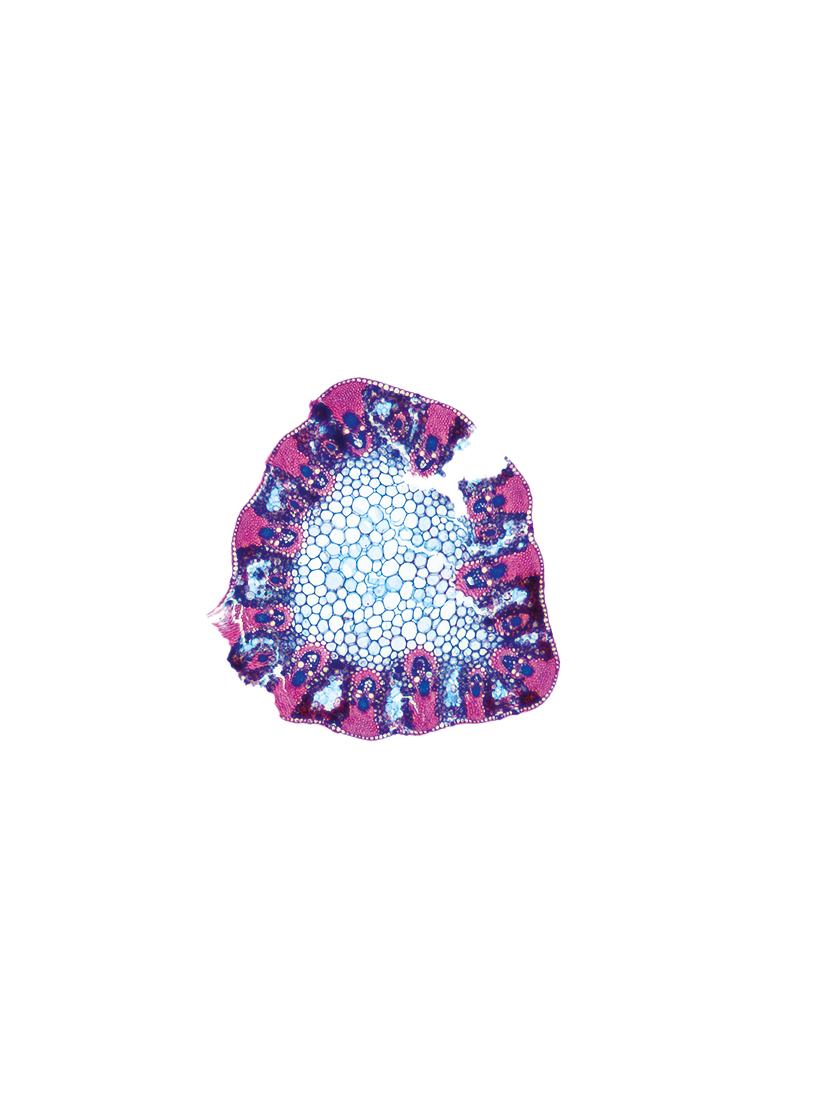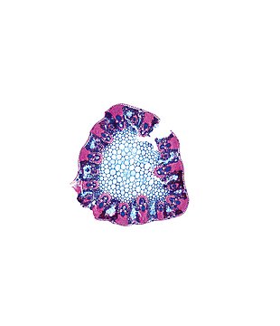 Culm-diameter 0.5-1 mm, center full, radius of culm in relation to wall thickness 1:1. Otline triangular, obtusely. Culm-center full, containing unlignified cells. Center with net-like aerenchyma (stellate). Epidermis cells inside thin, peripheral thicke