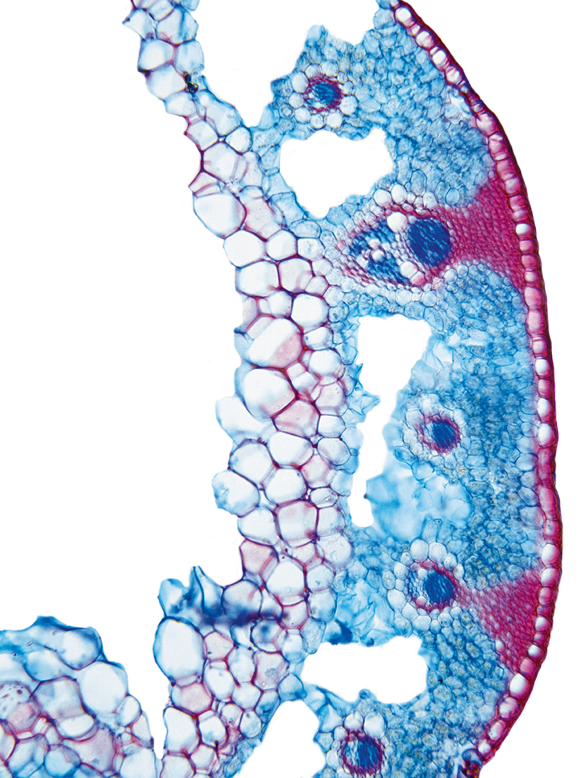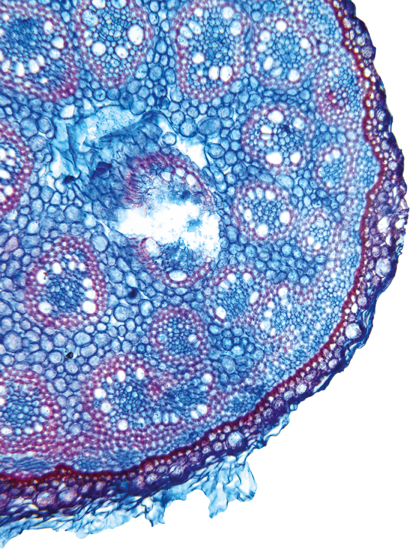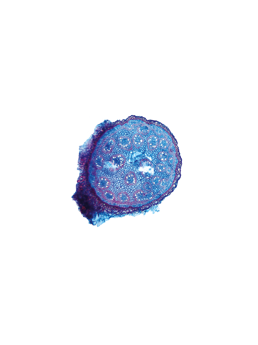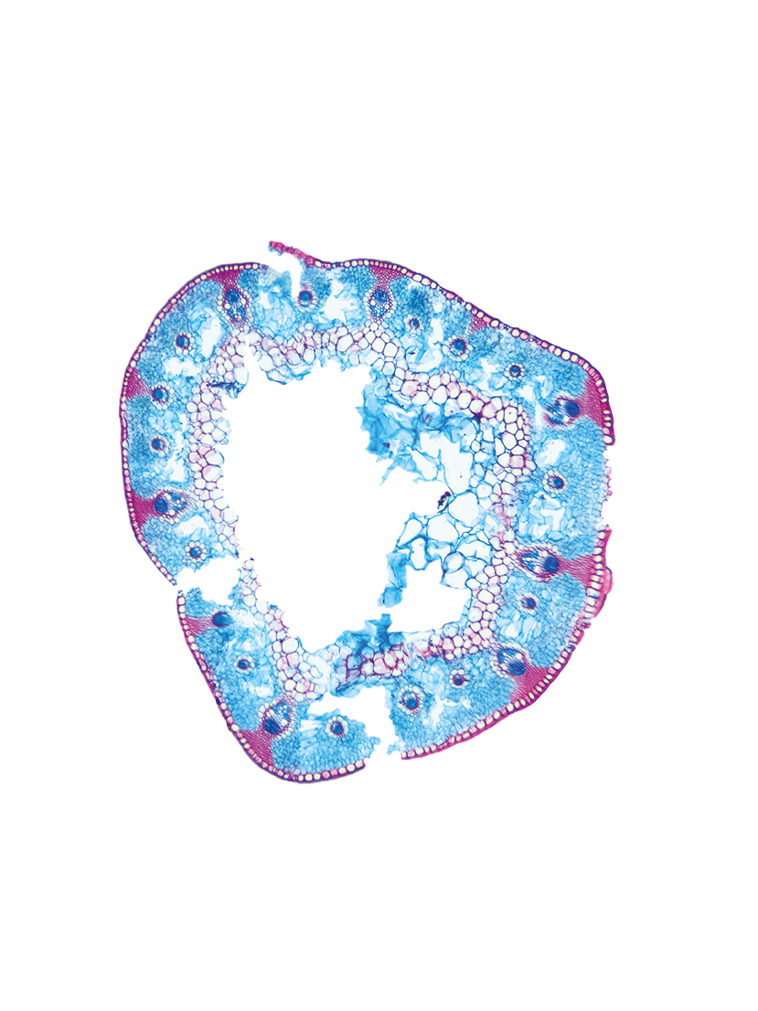 Culm-diameter 1-2 mm, wall very large, radius of culm in relation to wall thickness approximately 1: 0.75. Otline triangular, obtusely. Culm-center hollow and surrounded by many large thin-walled, not lignified cells. Center with net-like aerenchyma (stel