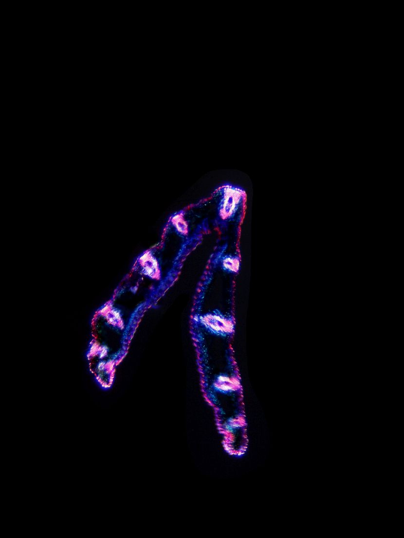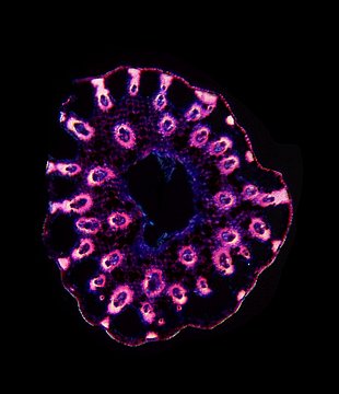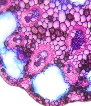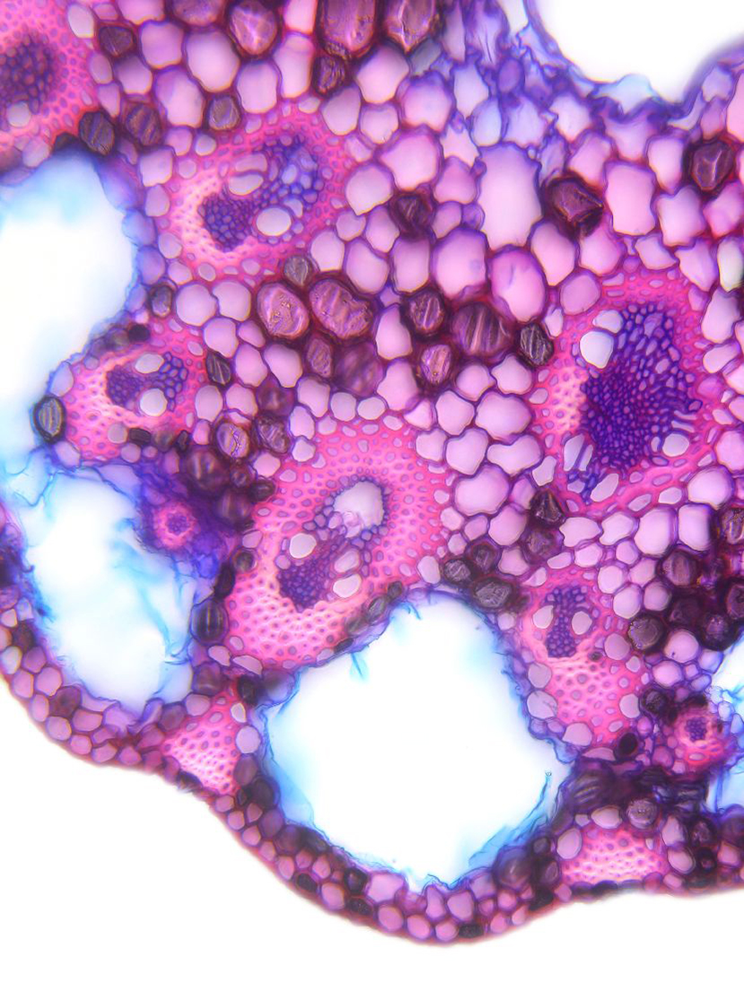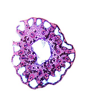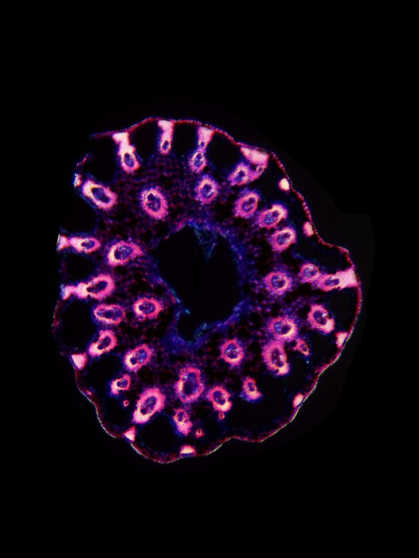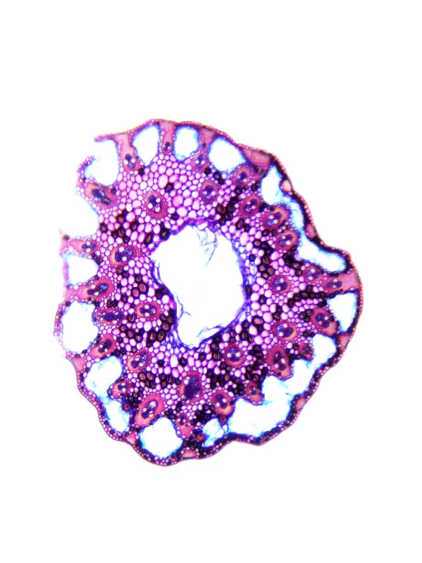 Cross-section with exeptional shape. Outline wavy. Culm center hollow. Recognizable epidermis cells. Peripheral sclerenchymatic stabilisation structure (girders) rectangular. Large vascular bundles in one row. Solitary large vascular bundles. Vascular bun
