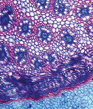 Rhizome diameter 2-4.99 mm, Rhizome center full, containing lignified cells. Endodermis absent.With cortex/central cylinder separation. Endodermis present. Endodermis cells u-shaped, thick walled. Cells in the cortex round. Vascular bundles in the cortex