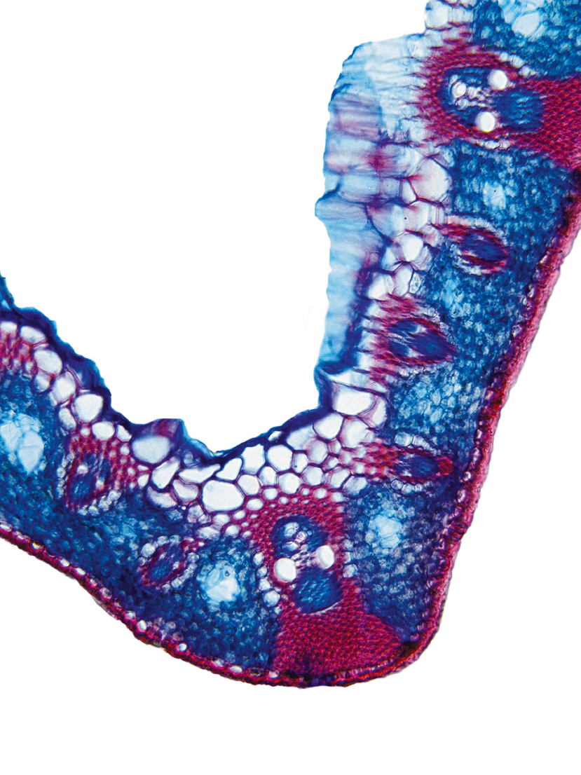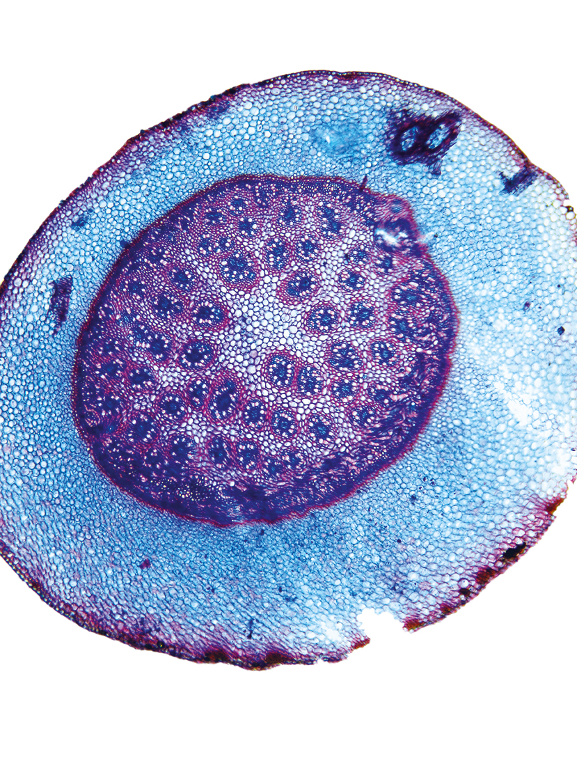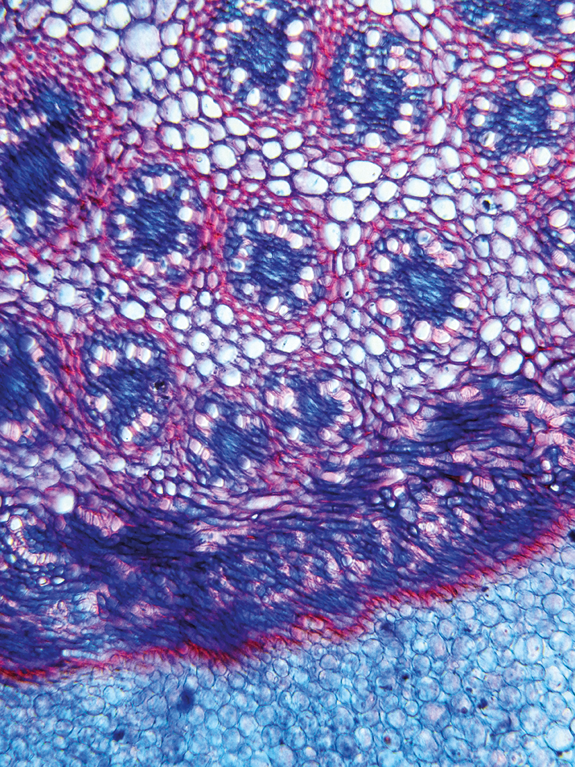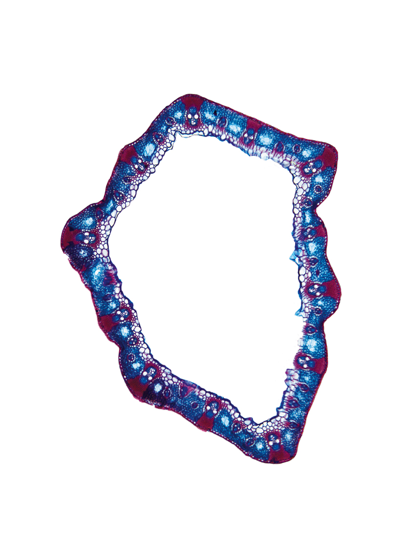 Culm-diameter 1-2 mm, wall thin, radius of culm in relation to wall thickness approximately 1: 0.25 or < 0.25. Otline triangular, obtusely. Culm-center hollow and surrounded by a few thin-walled, not lignified cells. Center with net-like aerenchyma (stell