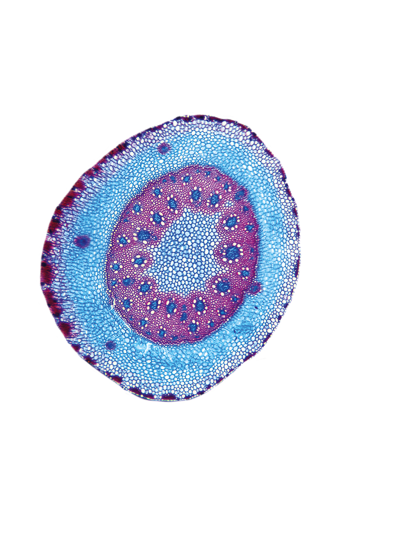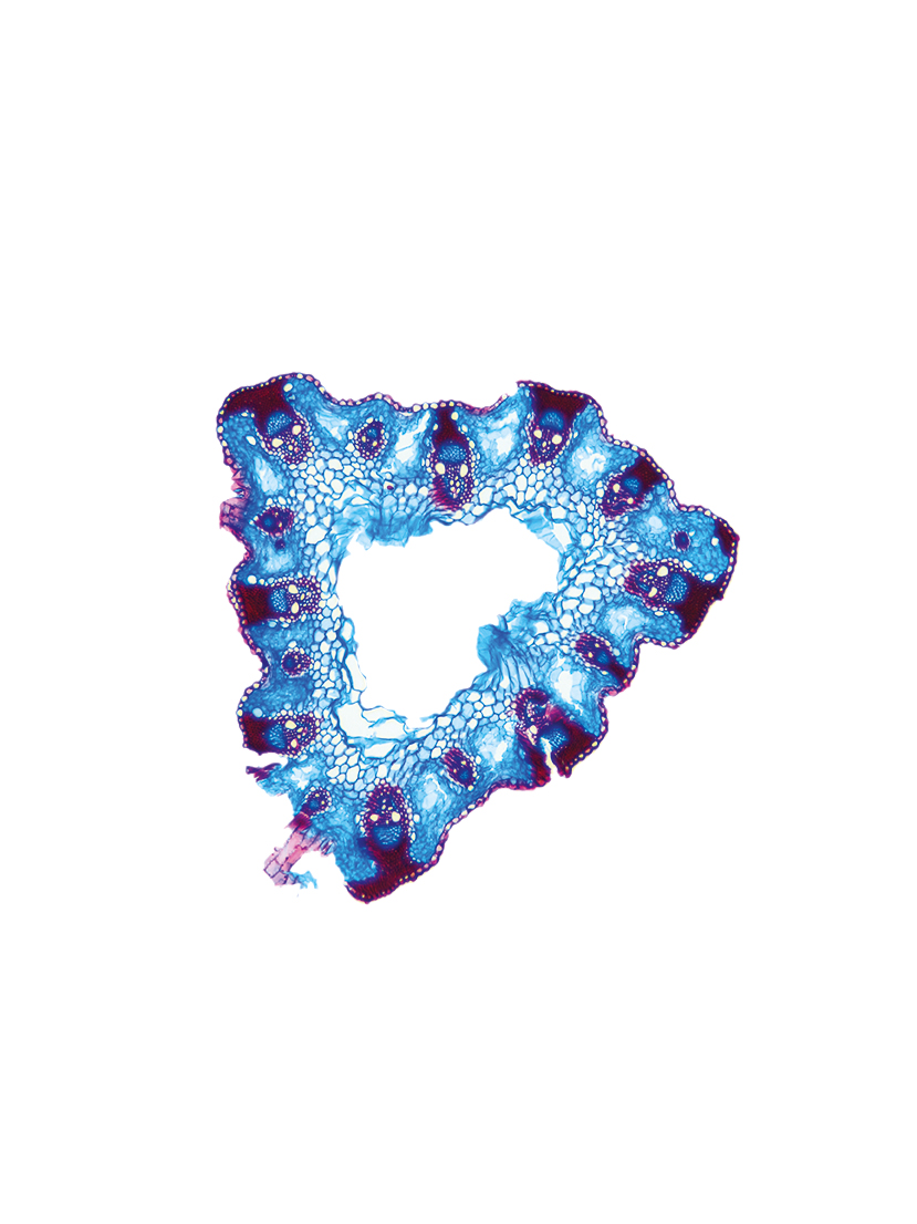 Culm-diameter 1-2 mm, wall very large, radius of culm in relation to wall thickness approximately 1: 0.75. Otline triangular, acutely. Culm-center hollow and surrounded by many large thin-walled, not lignified cells. Center with net-like aerenchyma (stell