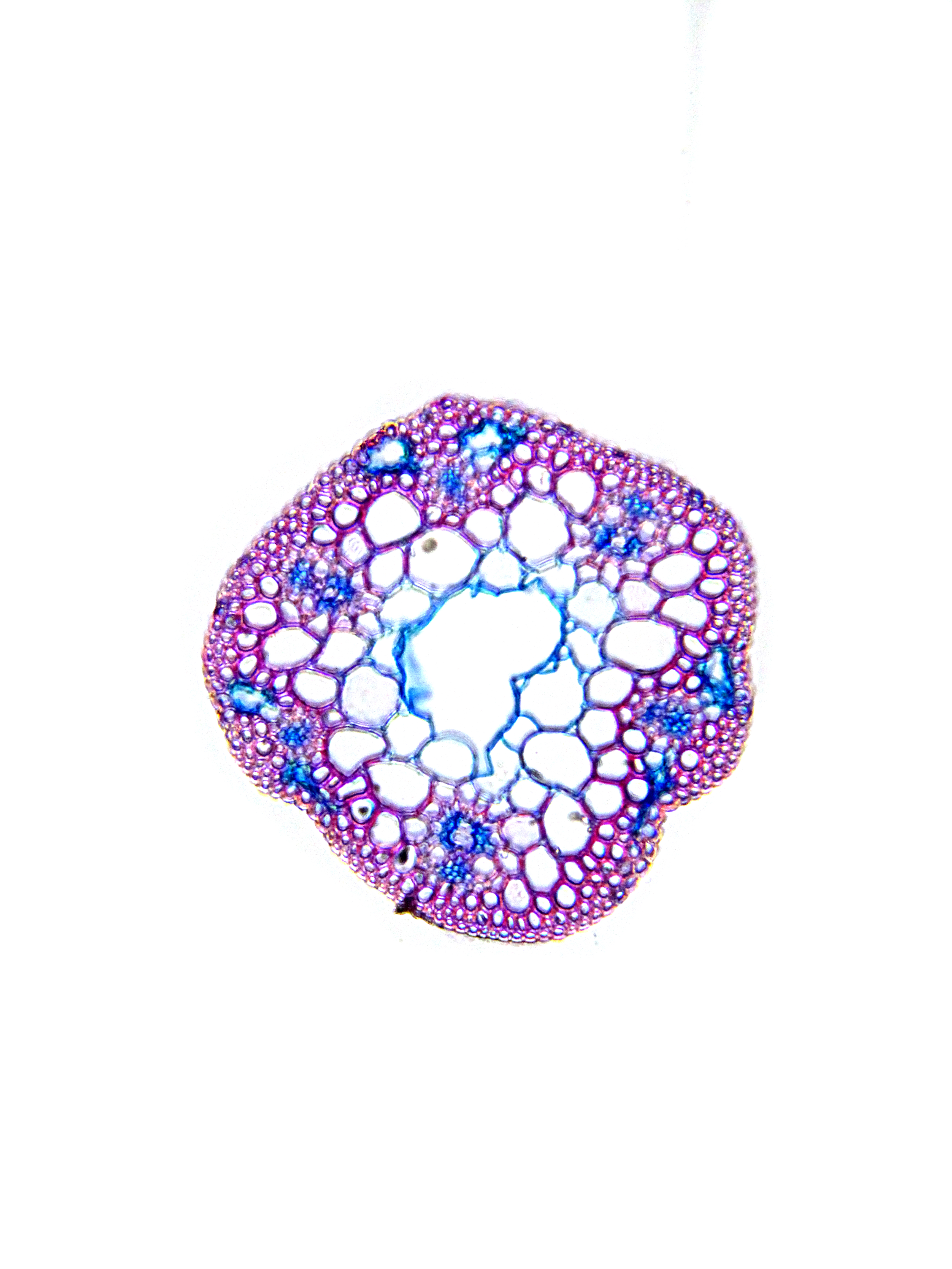 Culm-diameter < 0.5 mm, wall very large, radius of culm in relation to wall thickness approximately 1:0.75. Outline circular with a smooth surface. Culm-center hollow and surrounded by a few thin-walled, not lignified cells. Epidermis-cells thick-walled a