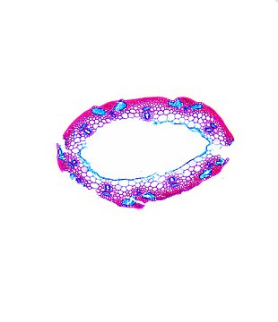Culm-diameter 0.5-1 mm, wall thin, radius of culm in relation to wall thickness approximately 1:0.25 or < 0.25. Outline circular with a smooth surface. Culm-center hollow and surrounded by a few thin-walled, not lignified cells. Epidermis-cells thick-wall